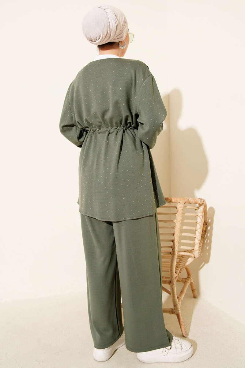 Loyşa Taşlı Bel Tünelli İkili Takım Siyah