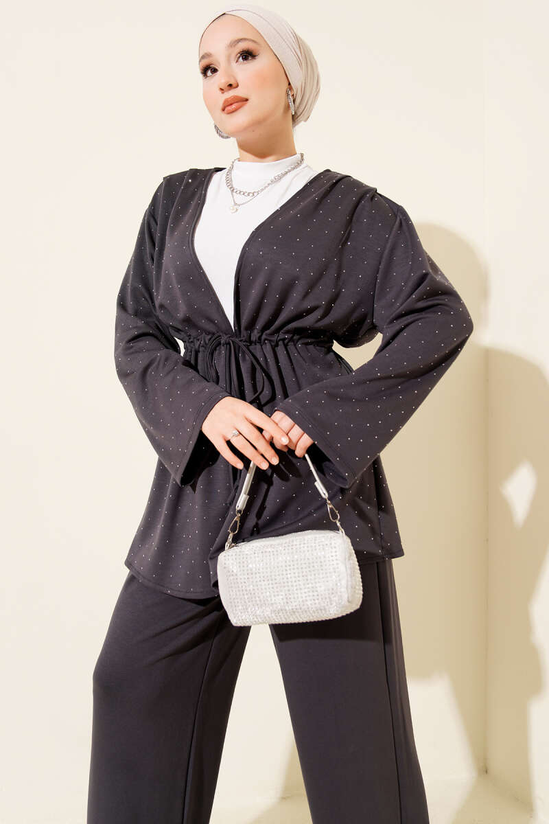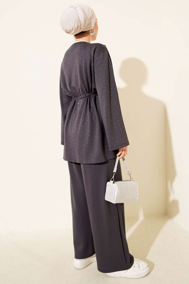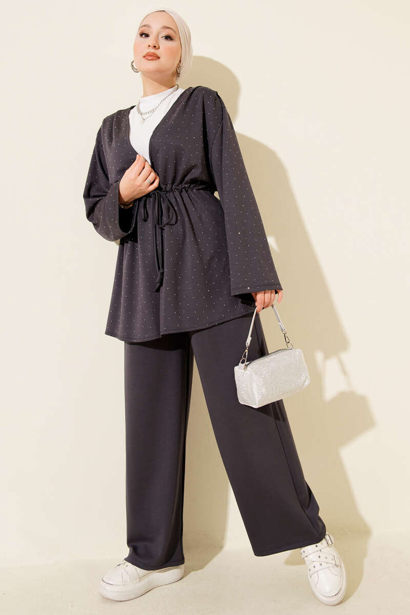 Loyşa Taşlı Bel Tünelli İkili Takım Siyah