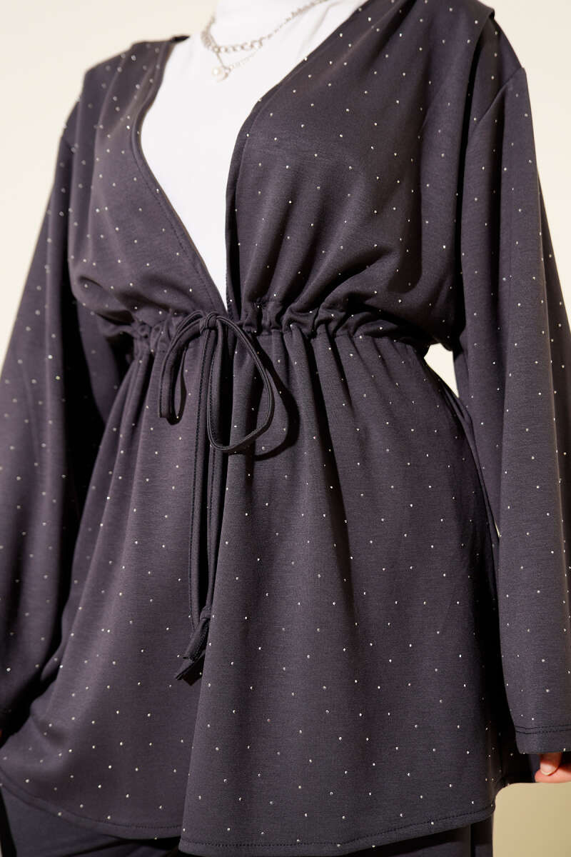 Duble Kol İp Bağcıklı Tunik Füme