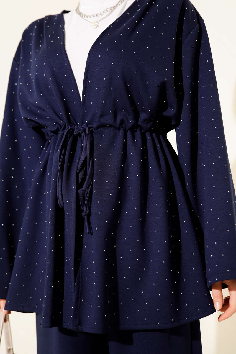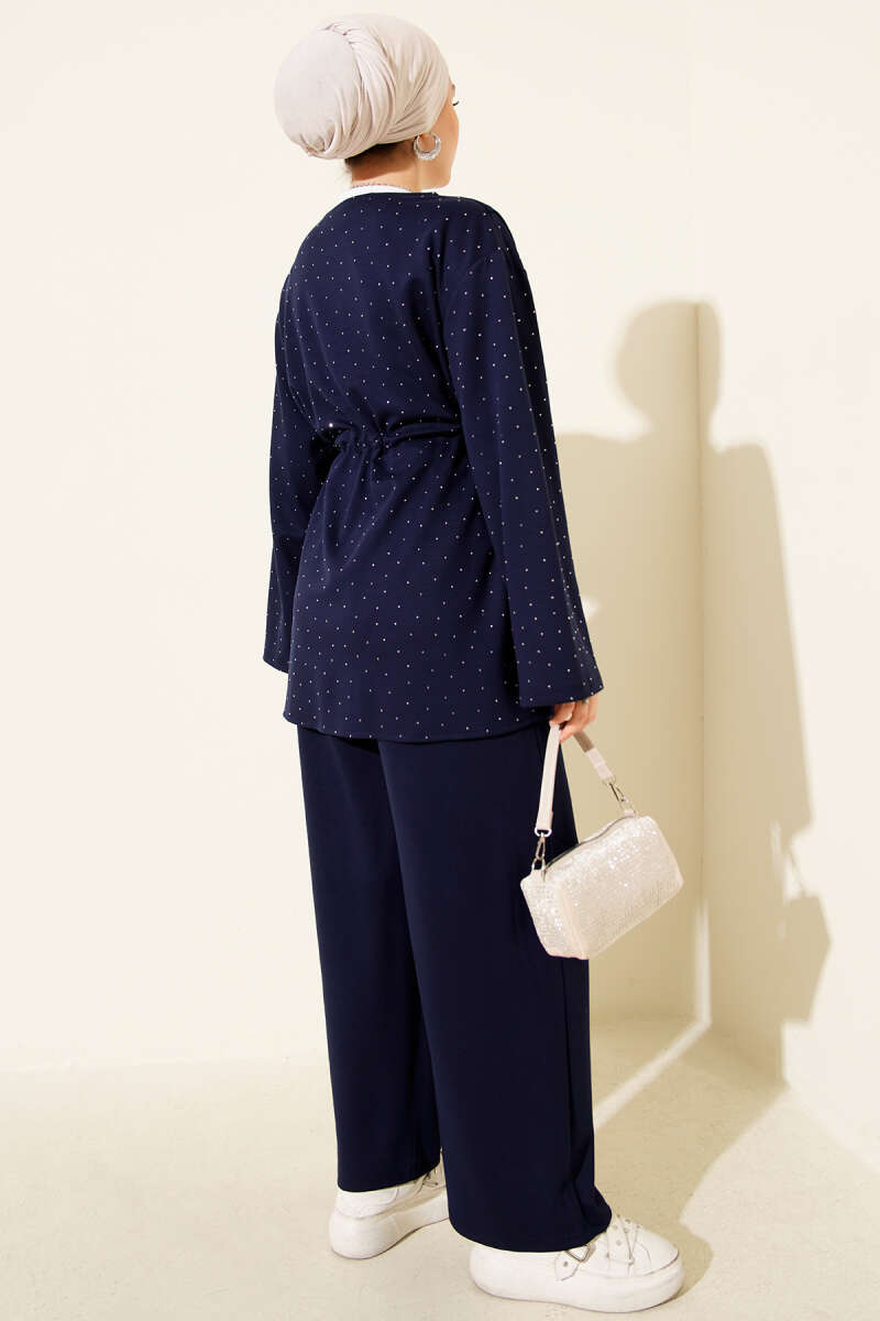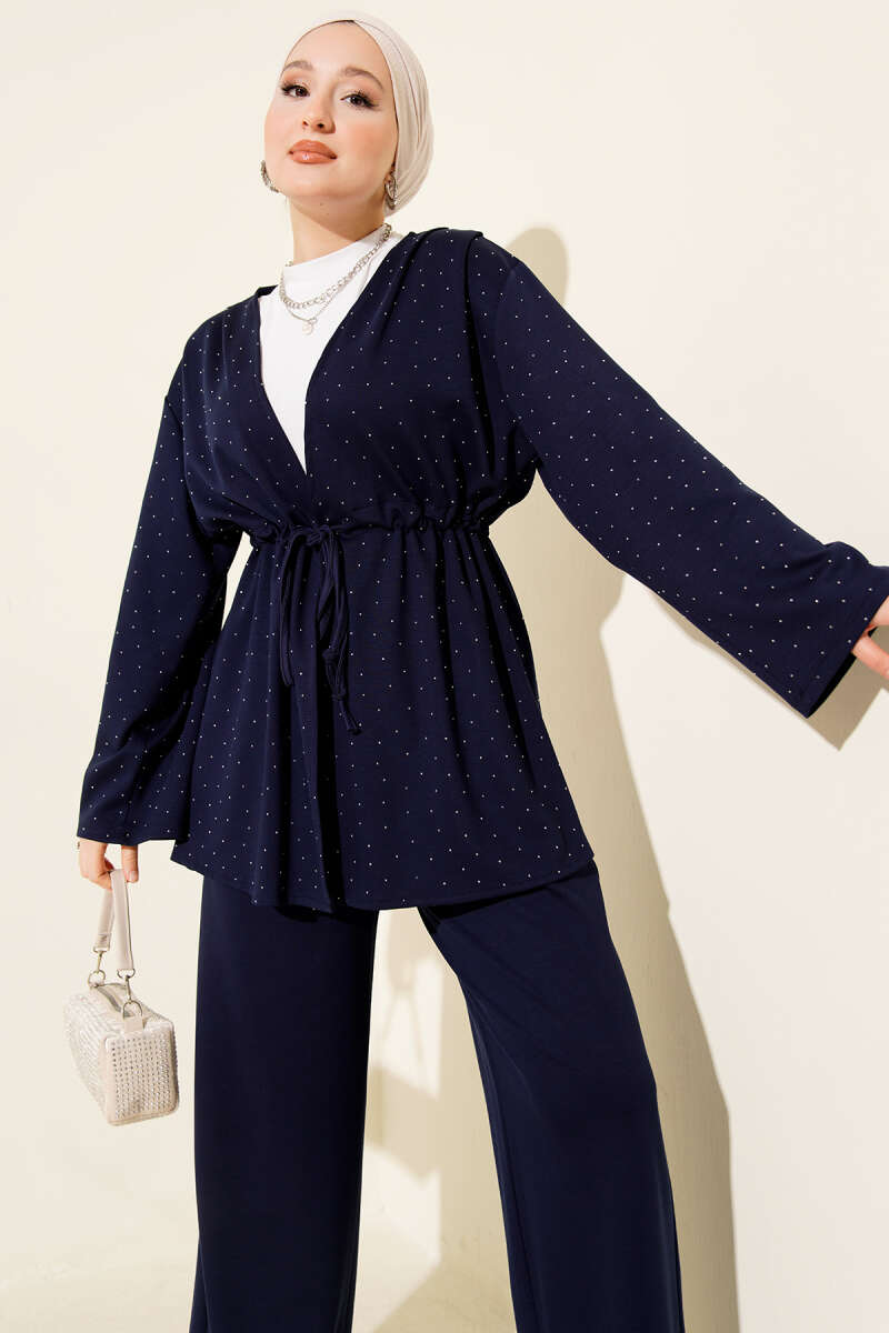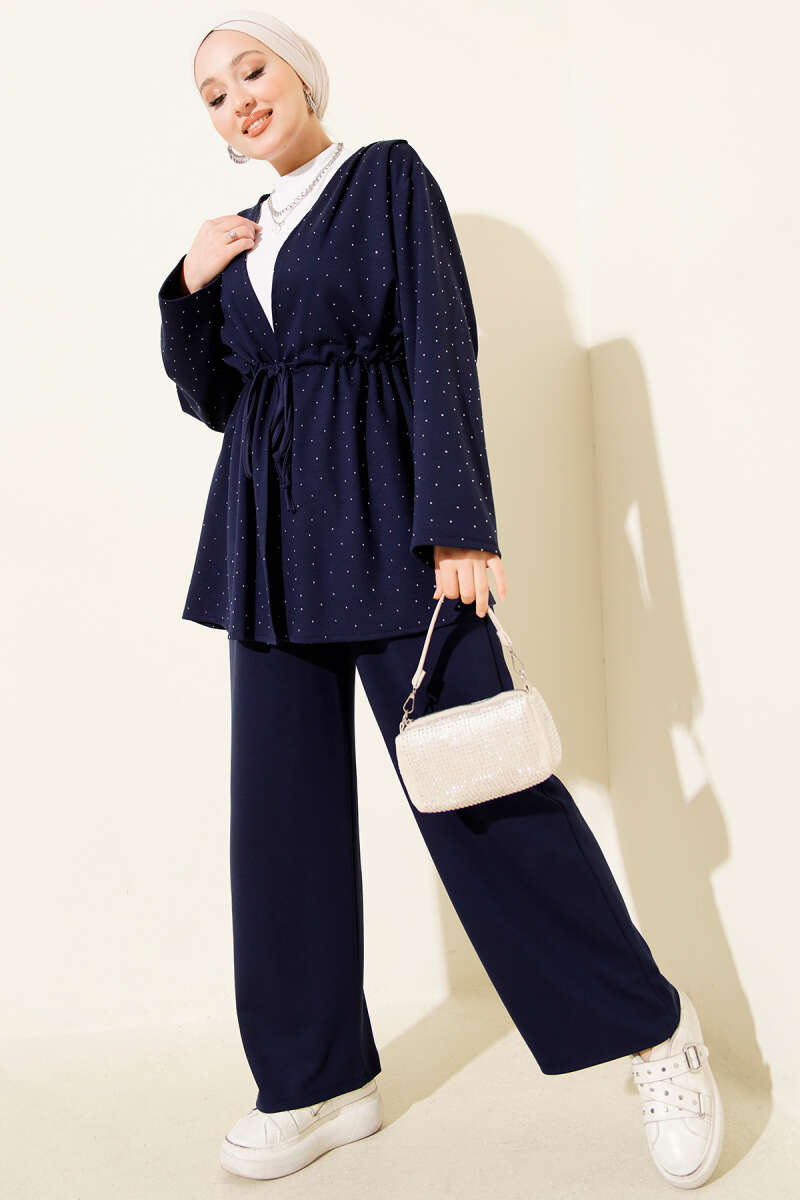 Şerit Detaylı Düğmeli Triko İkili Takım Lacivert