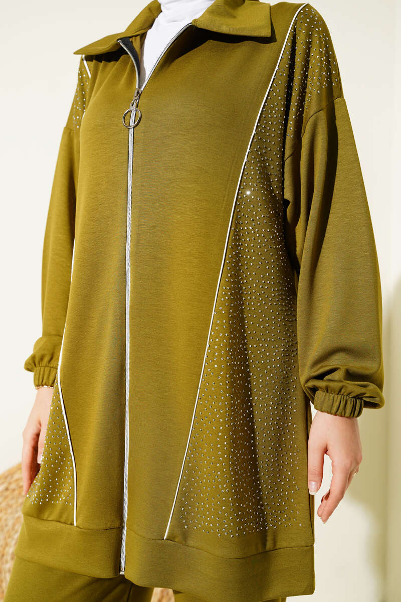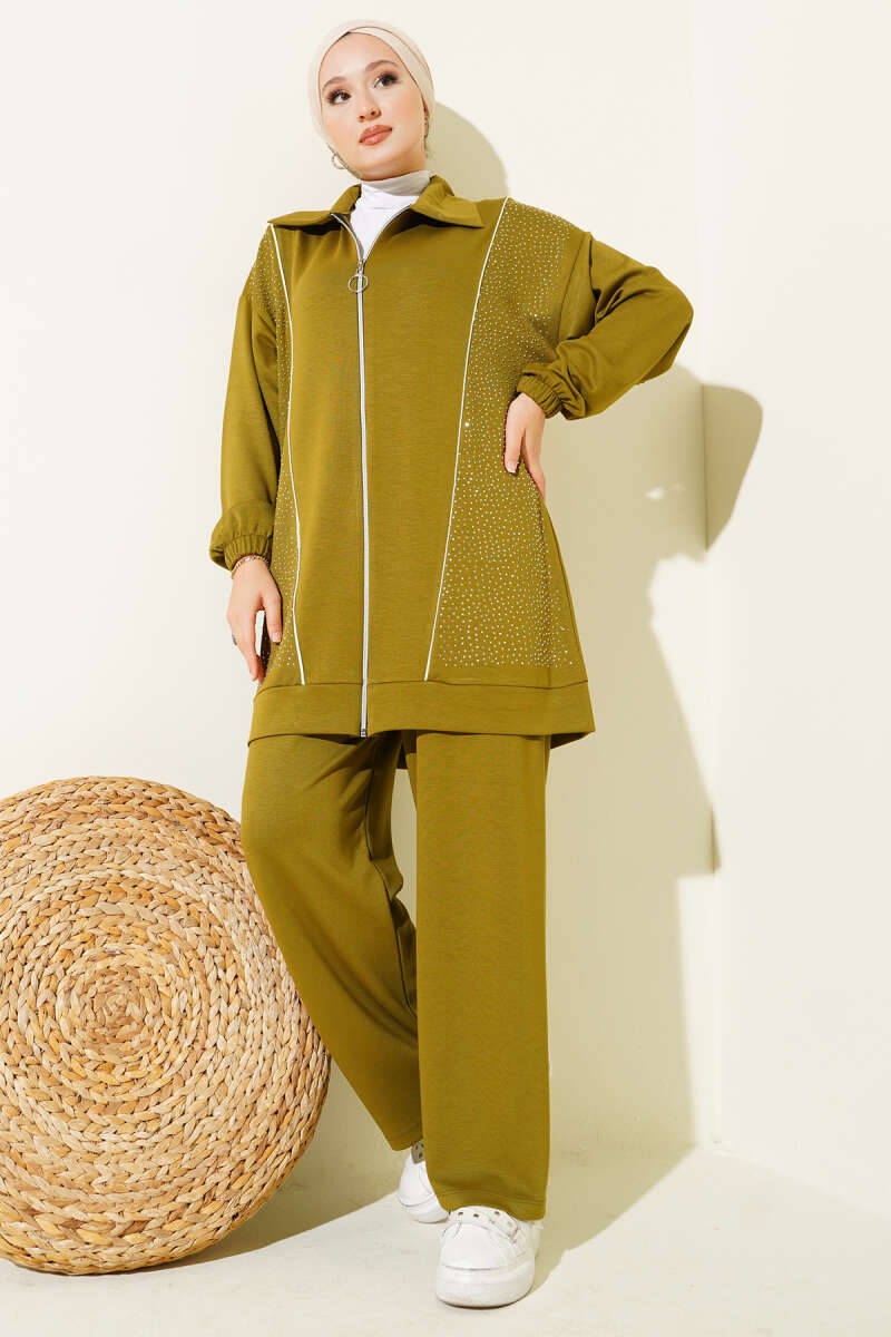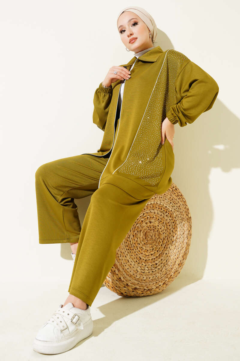 Mini Serpme Taşlı İkili Takım Haki