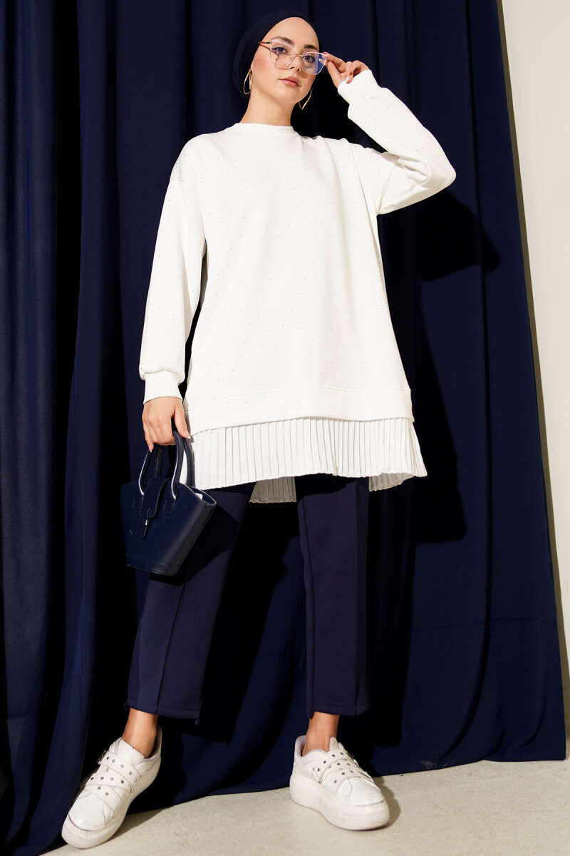 Loyşa Yuvarlak İncili Tunik Lacivert