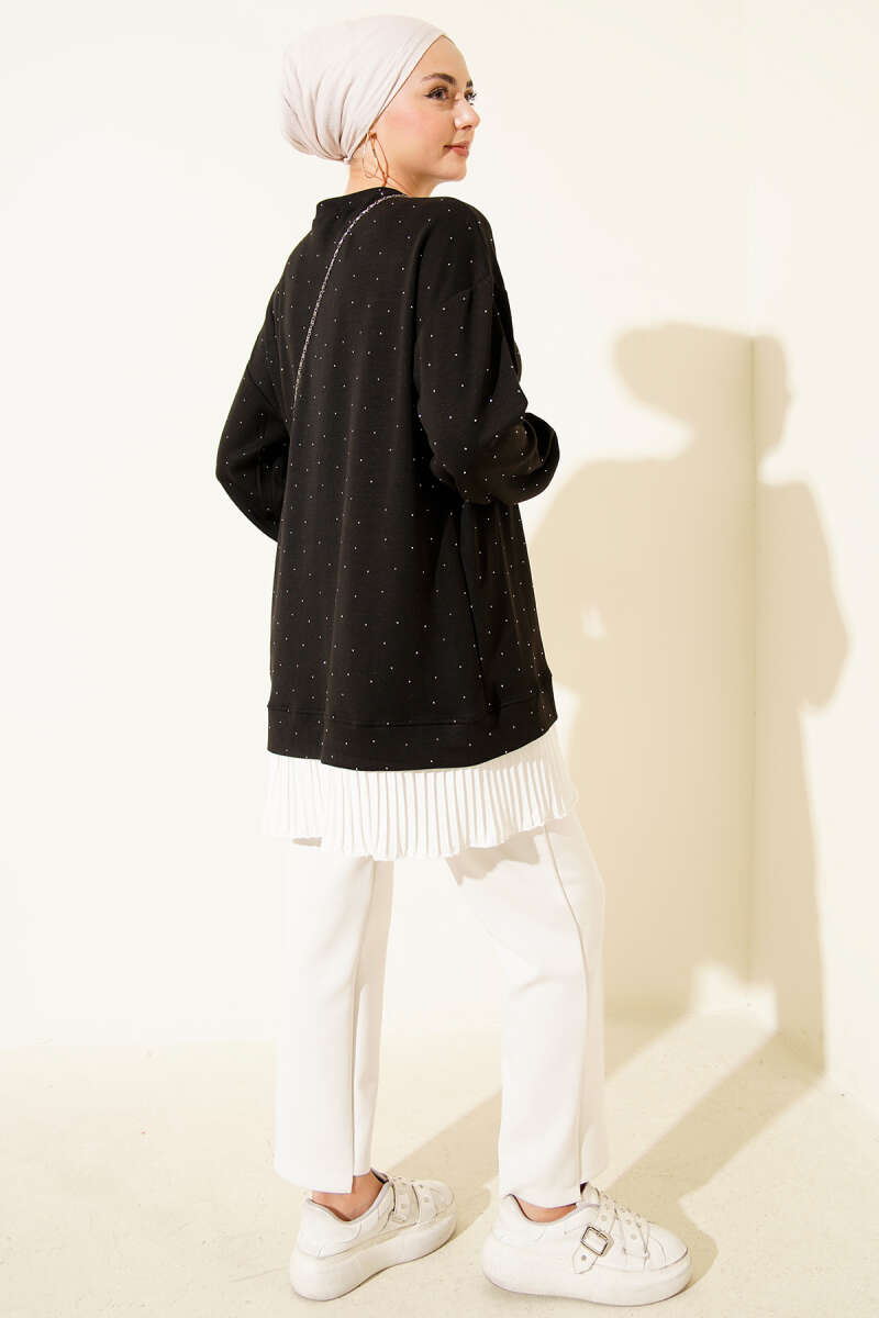 Bilek İpli Fitilli Kaşe Tunik Siyah