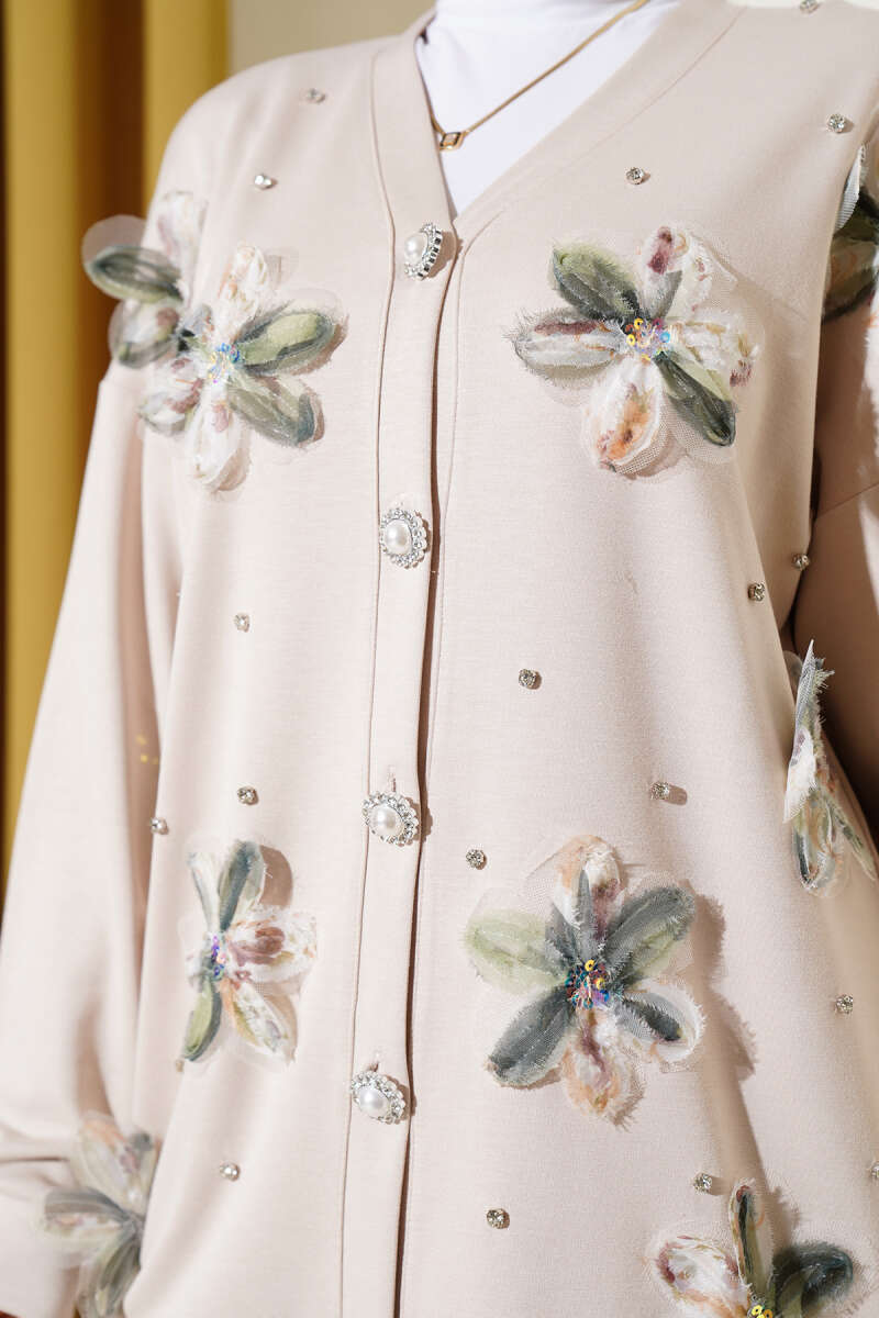 Loyşa Tül Çiçekli Taşlı Hırka Bej