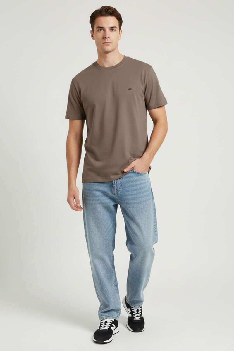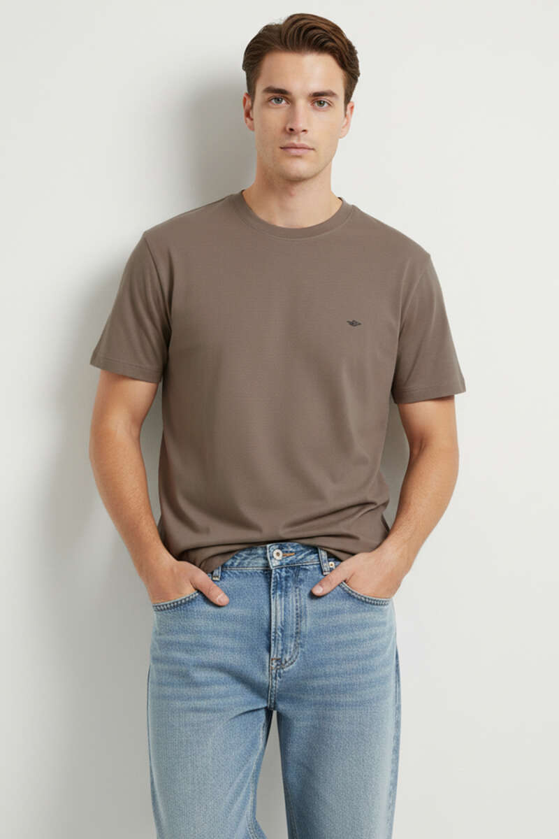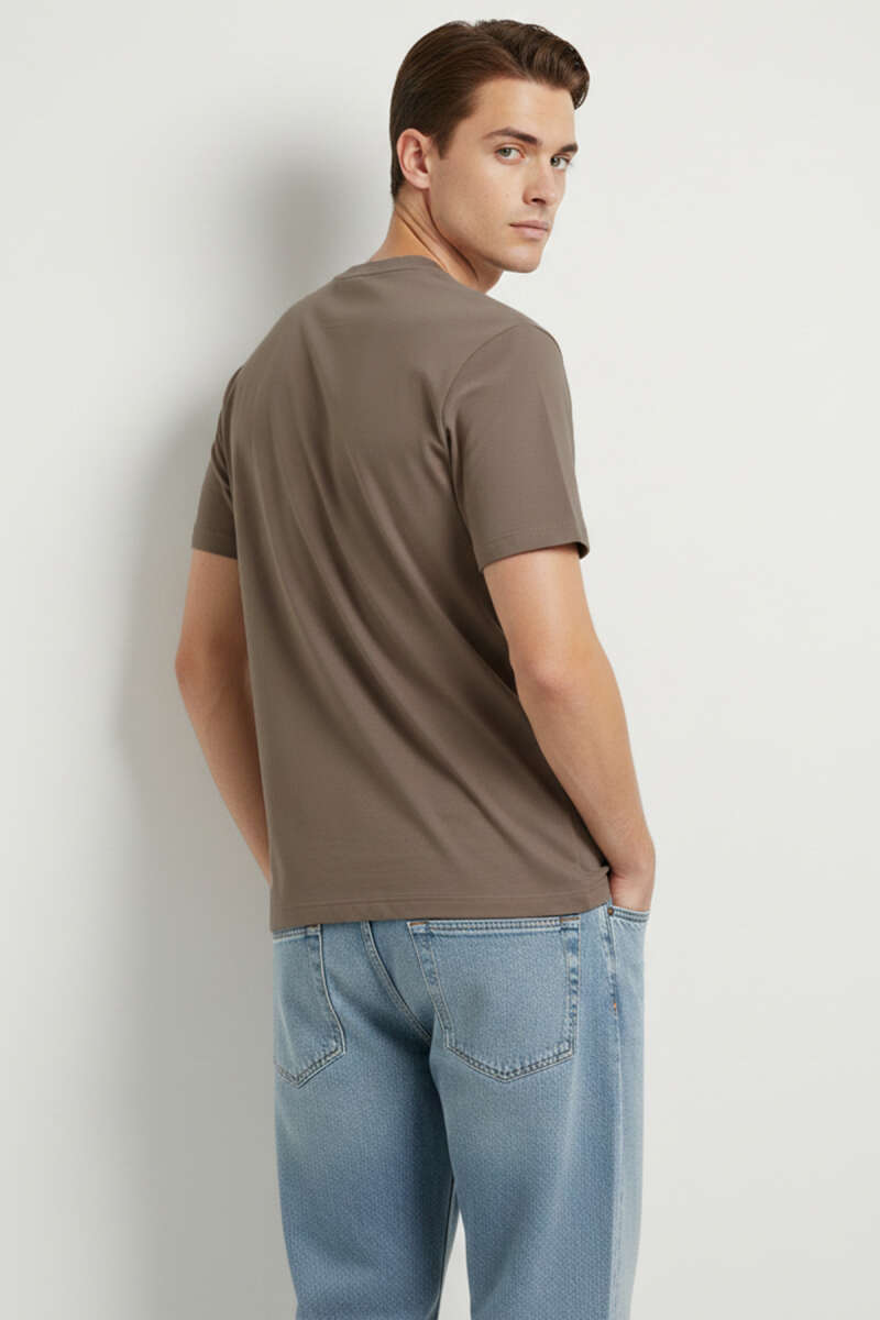 Loyşa Yaka Logolu Erkek T-shirt Kahve