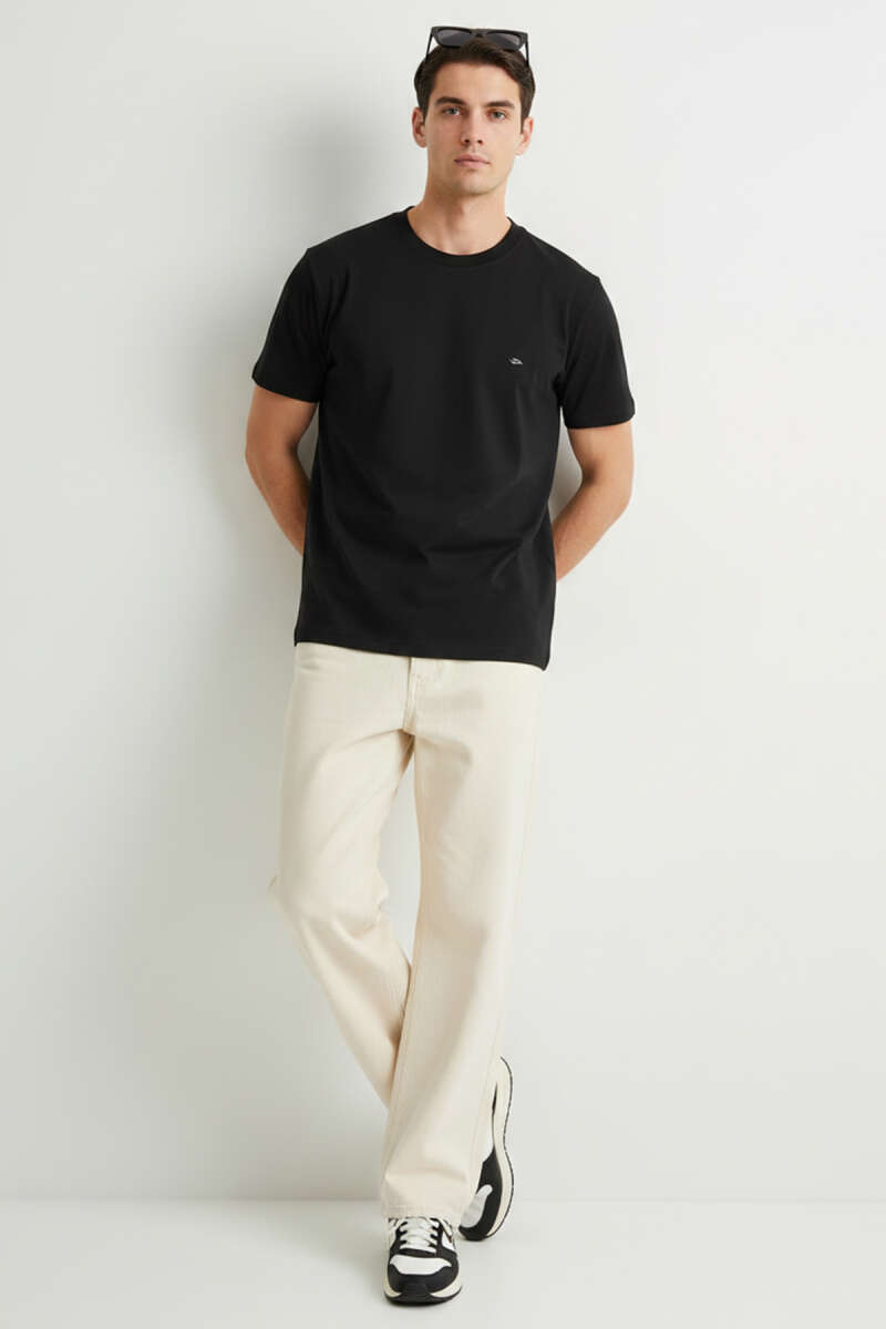 Loyşa Yaka Logolu Erkek T-shirt Siyah