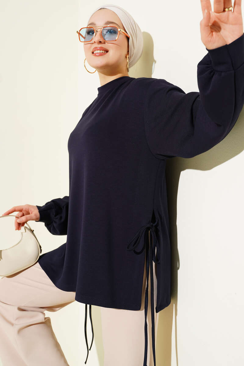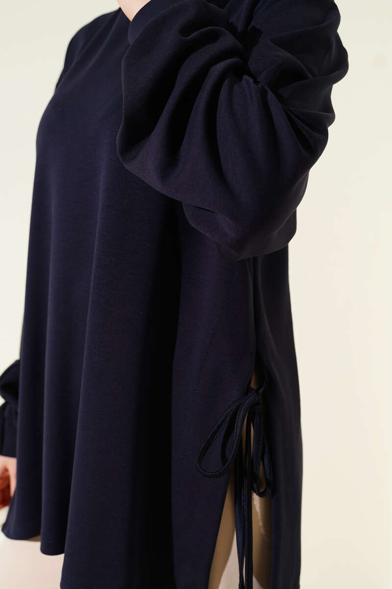 Geniş Fitilli Triko Yumoş Tunik Lacivert