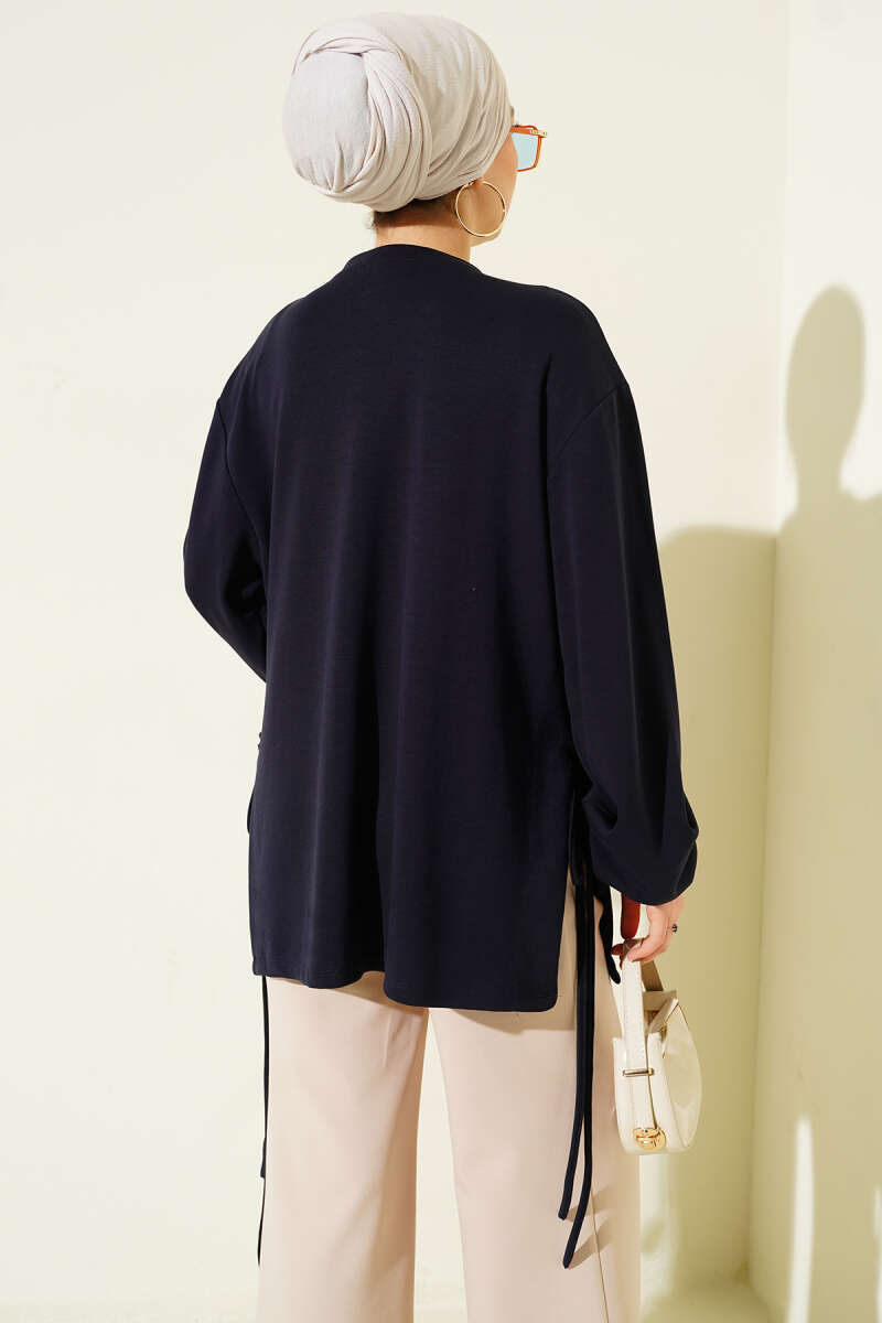 Kol Ribanalı Kapüşonlu Buklet Kap Lacivert