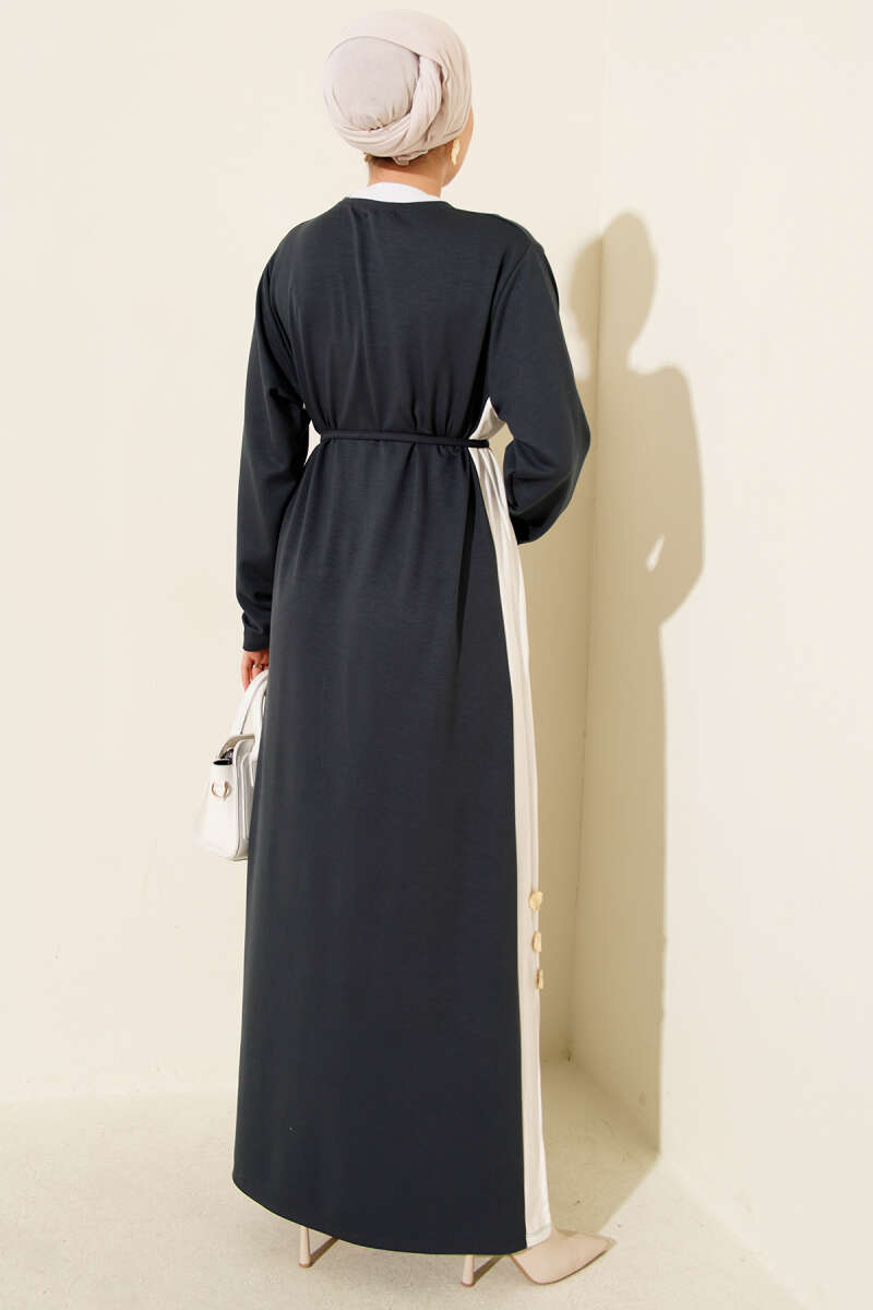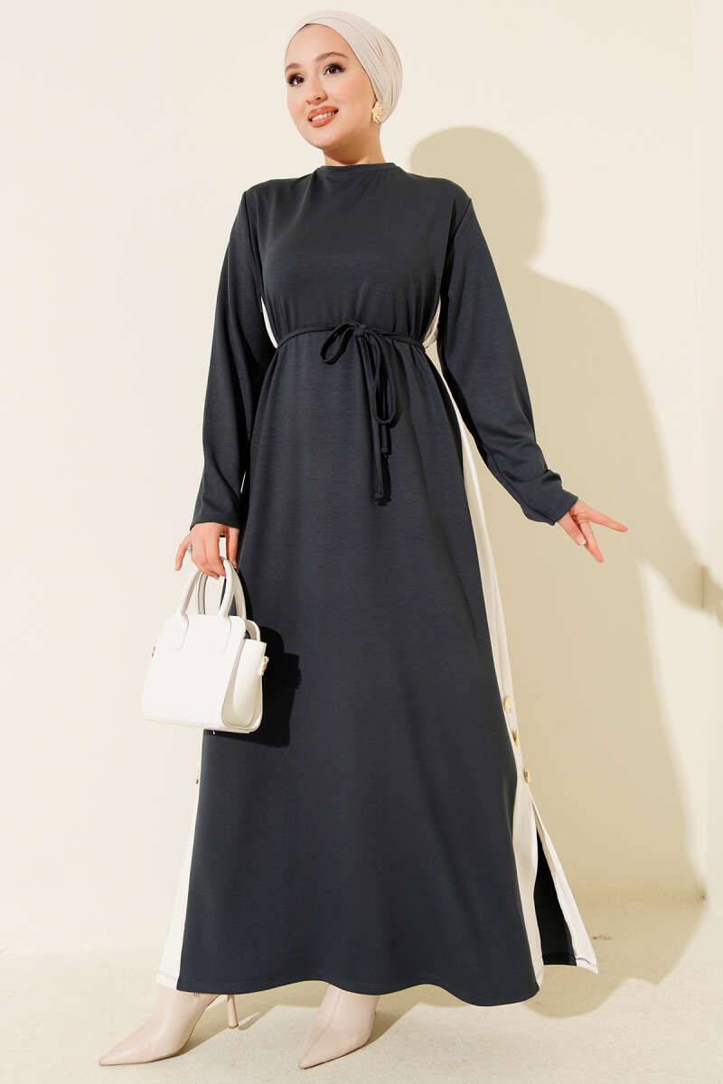 Bisiklet Yaka Fitilli Triko Elbise Gri