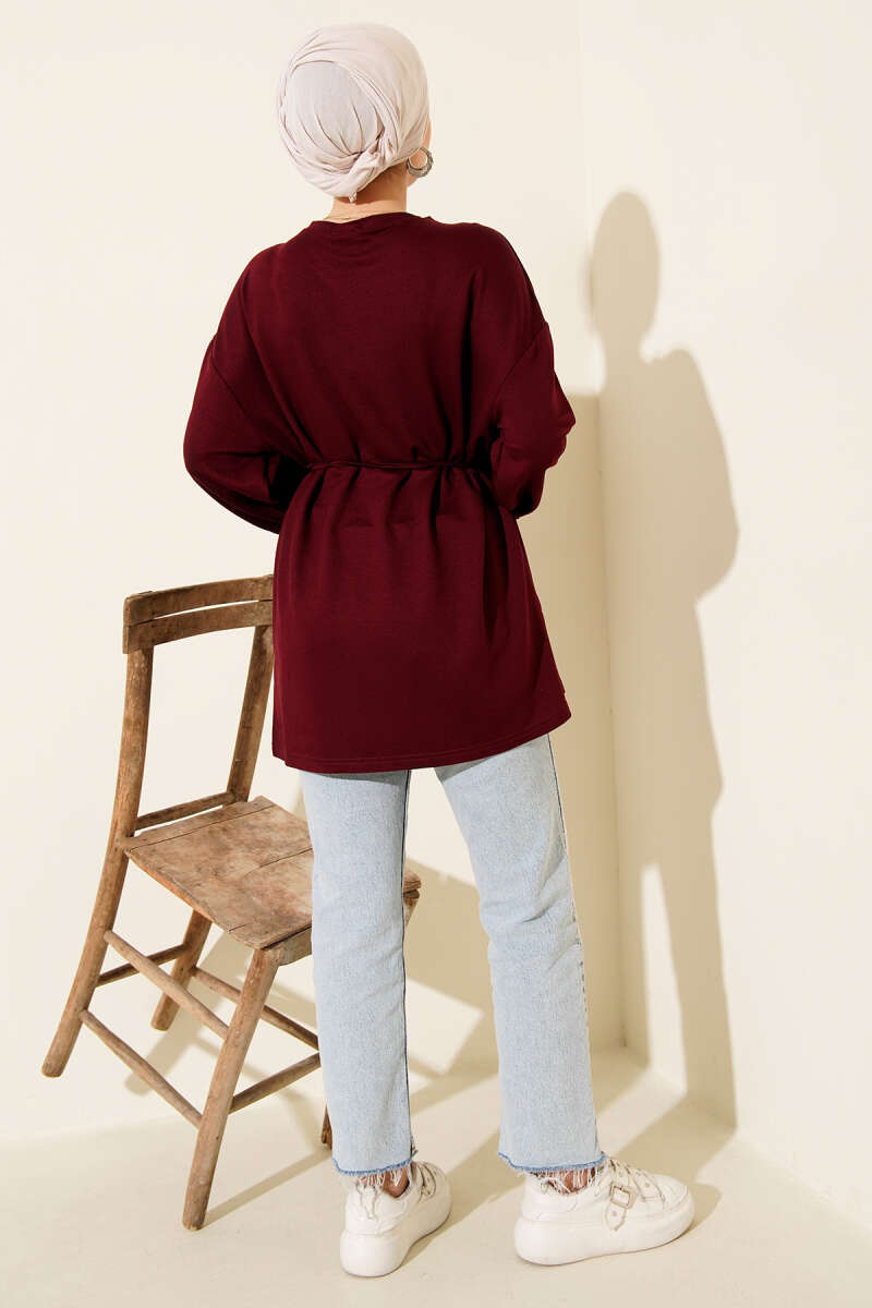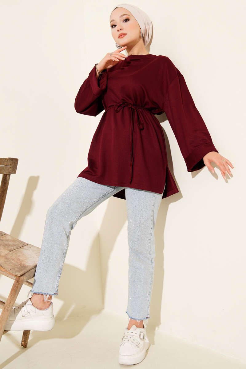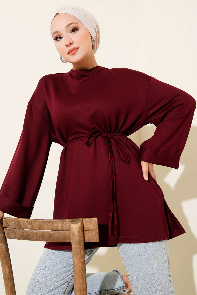 Loyşa Yan Yırtmaçlı Kuşaklı Tunik Bordo