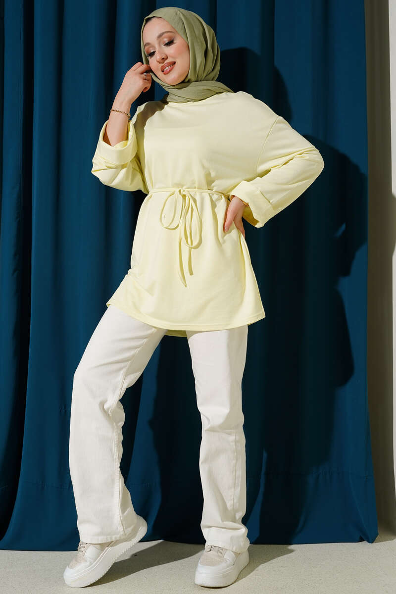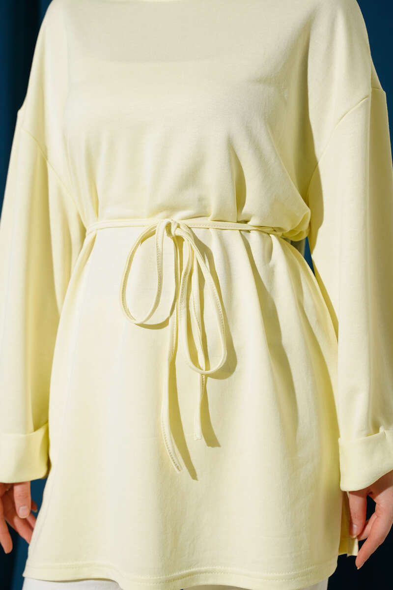 Loyşa Yan Yırtmaçlı Kuşaklı Tunik Ekru