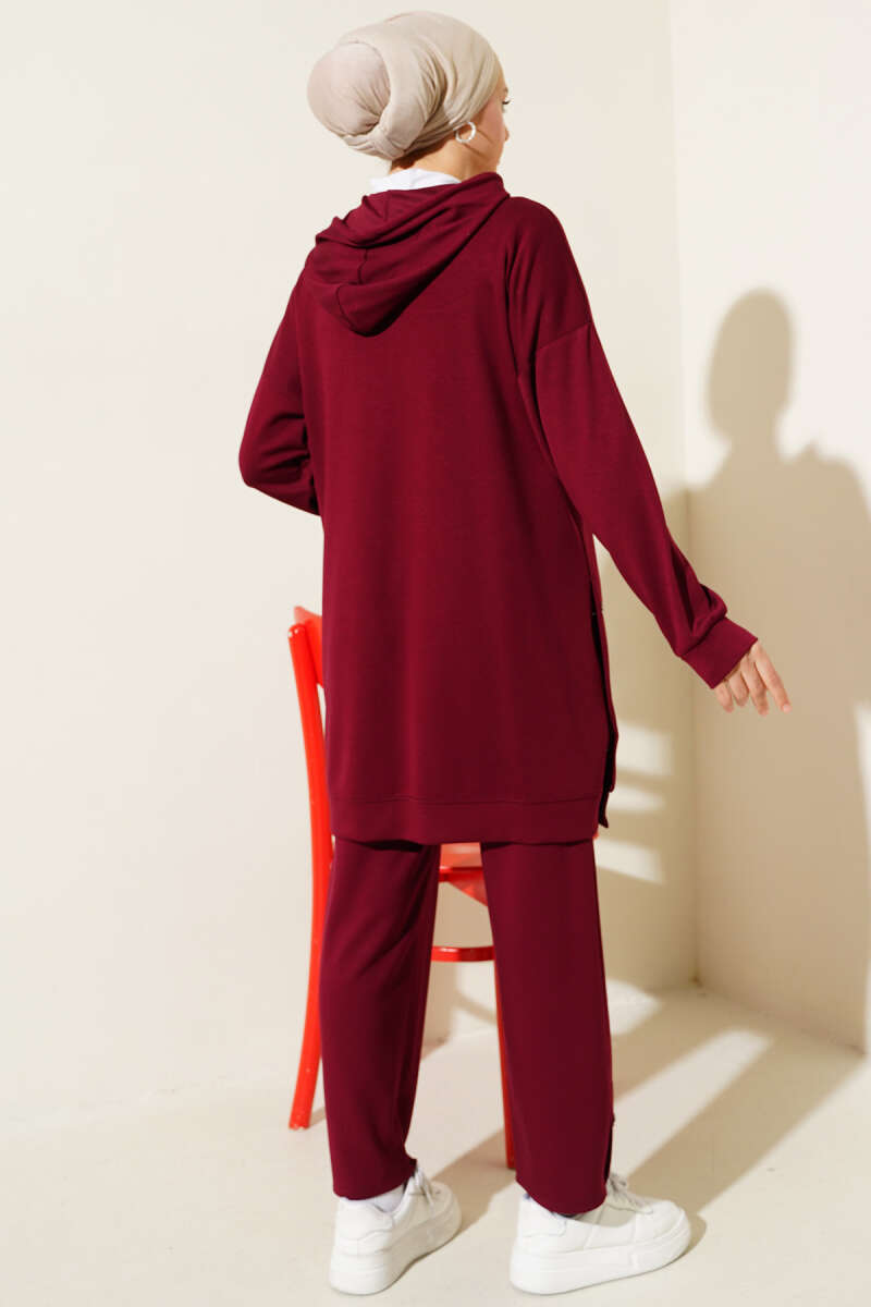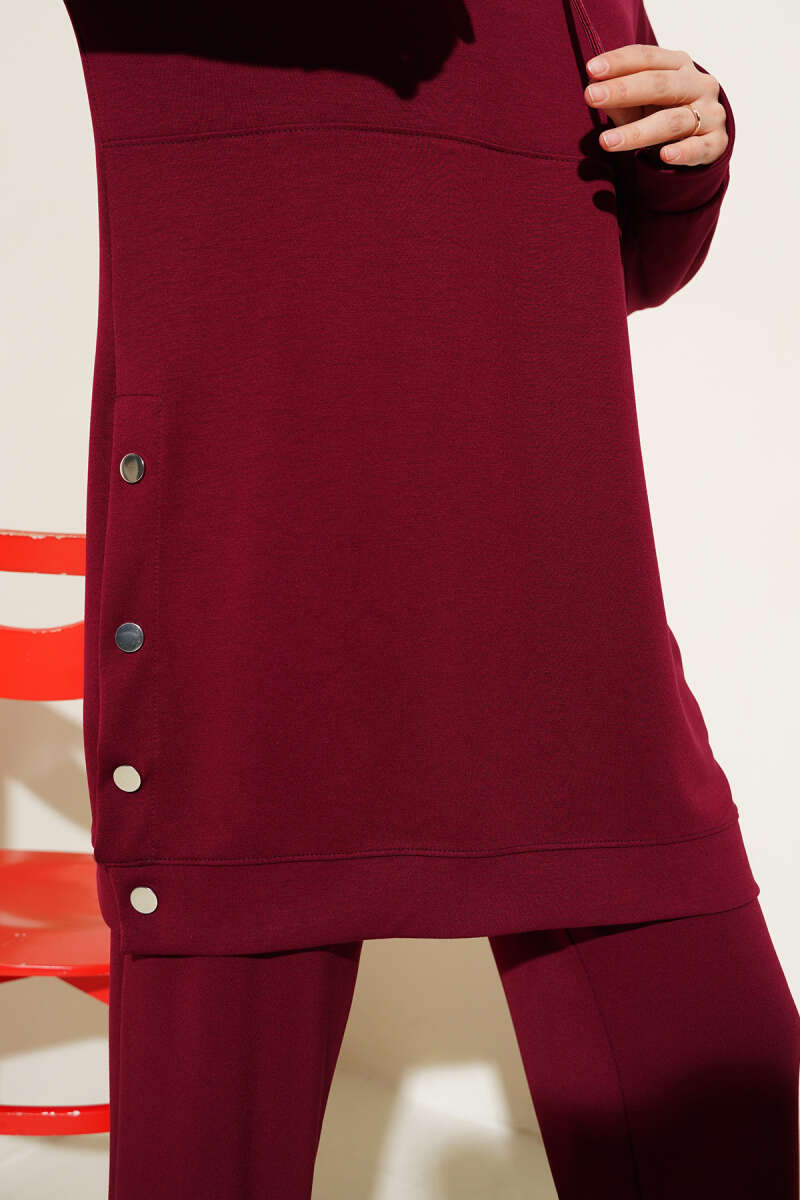 Loyşa Yanları Çıtçıtlı İkili Takım Bordo