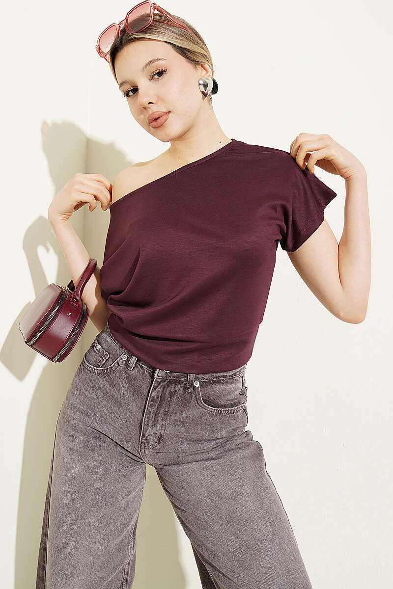 Loyşa Yarasa Kollu Bluz Mürdüm