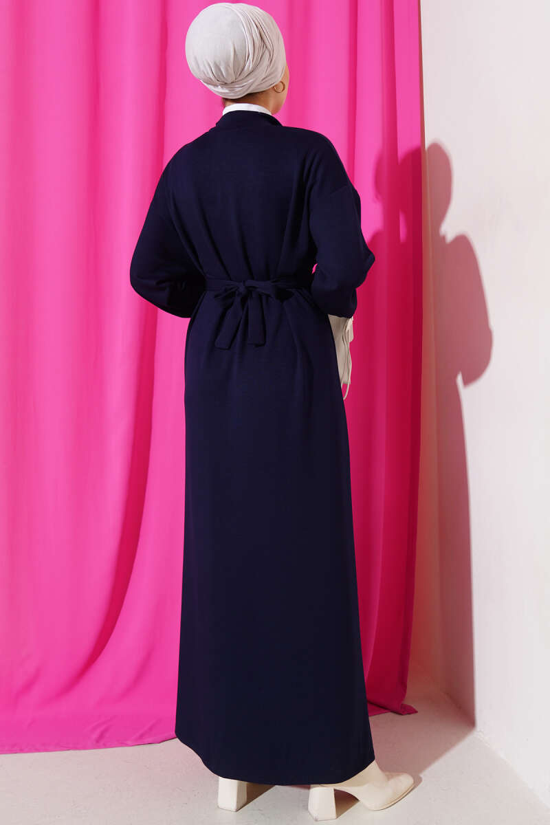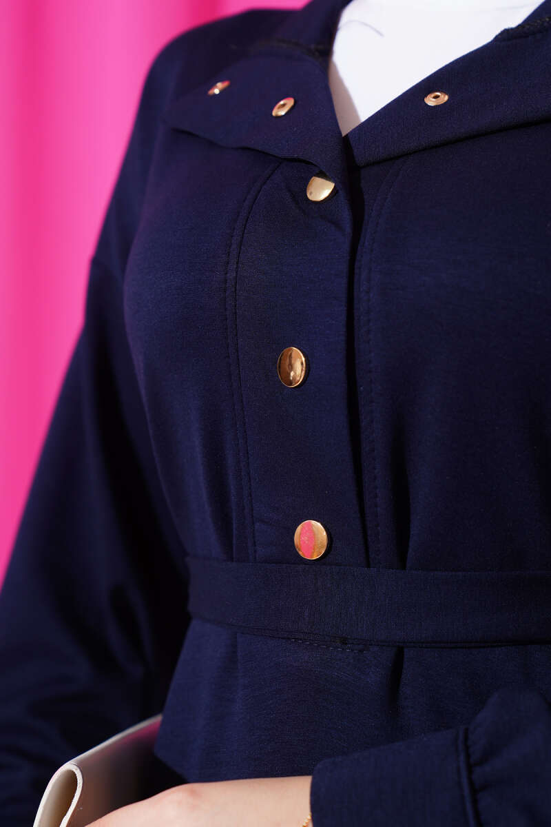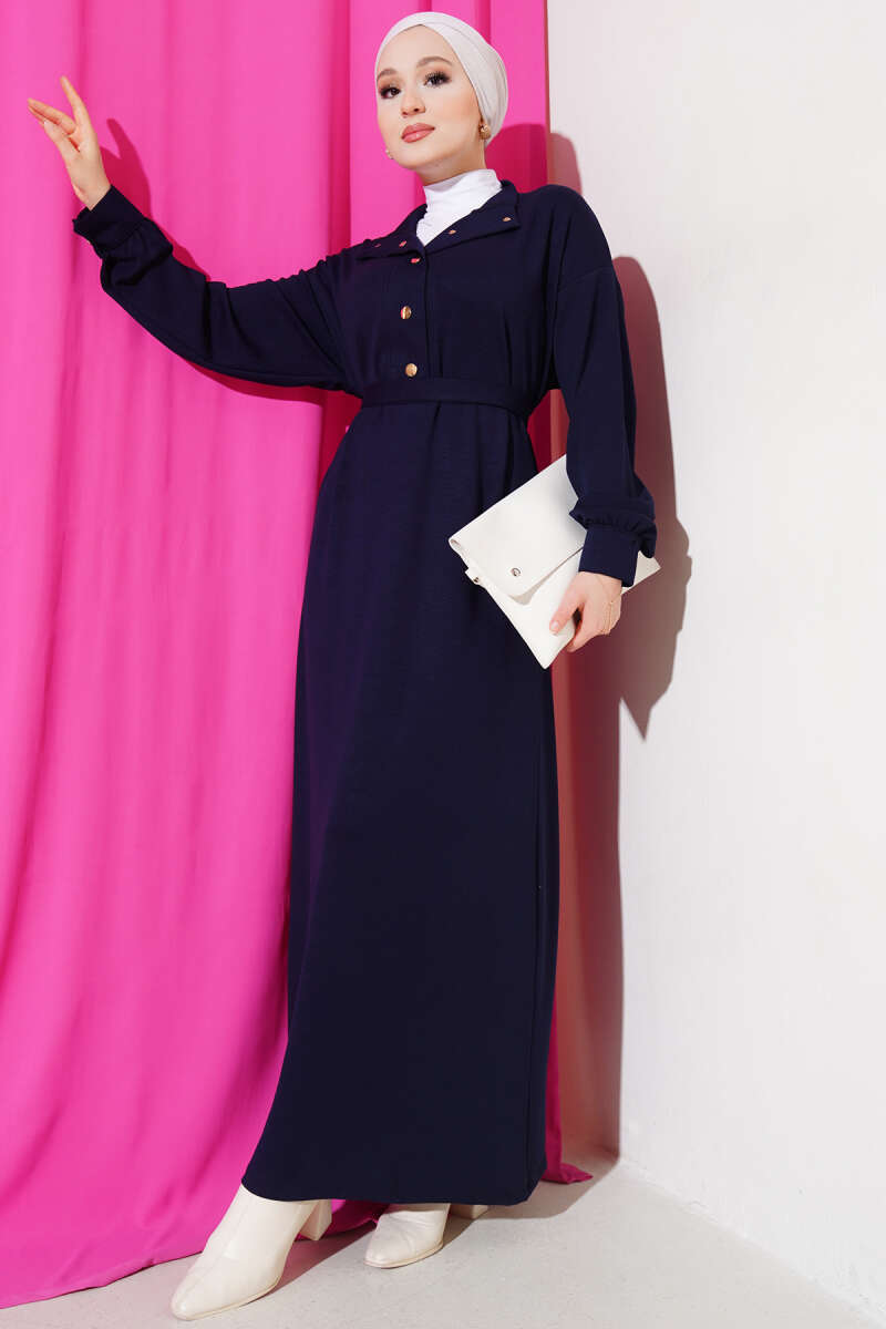 Loyşa Yarım Çıtçıtlı Kuşaklı Elbise Lacivert