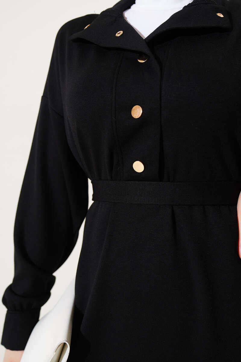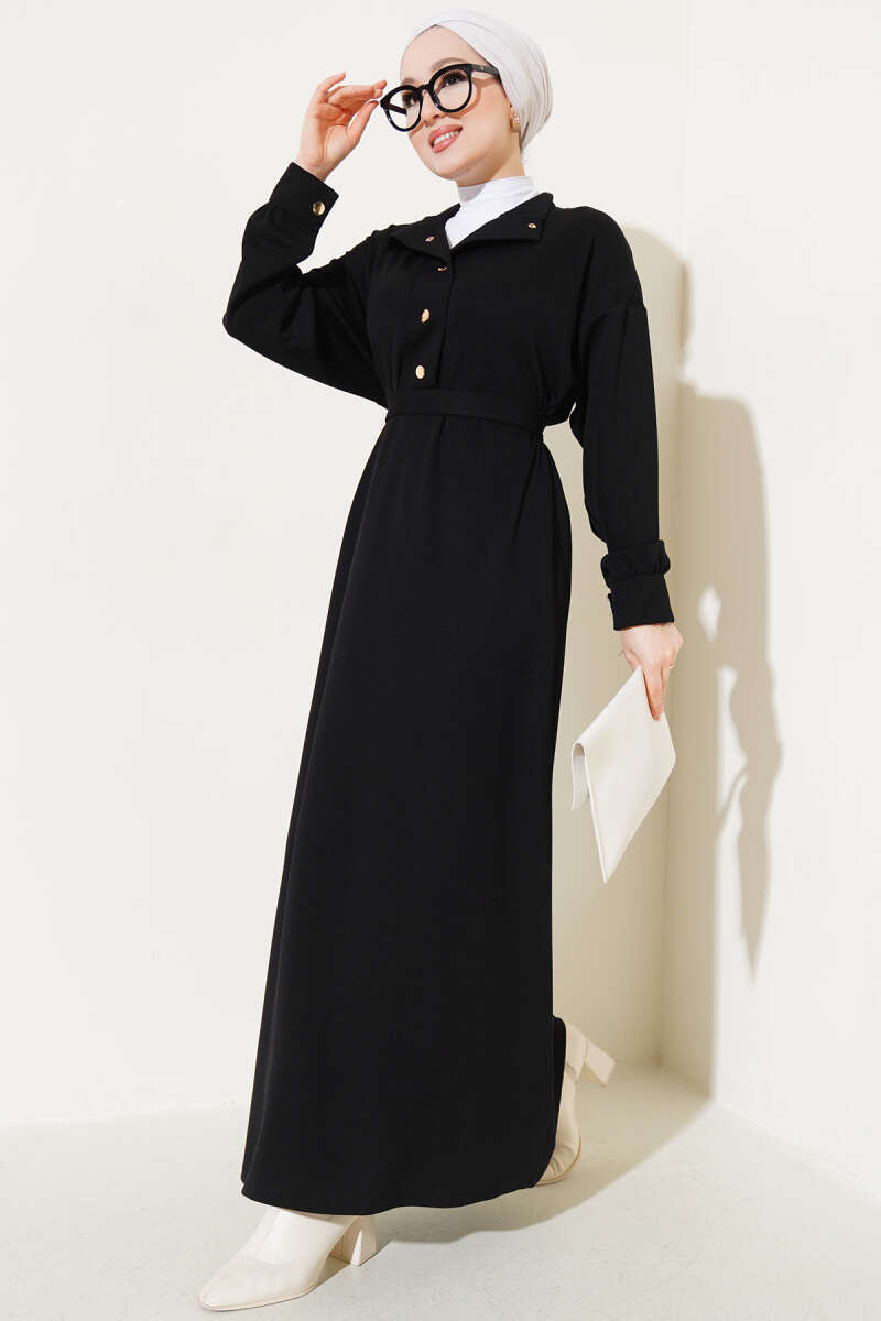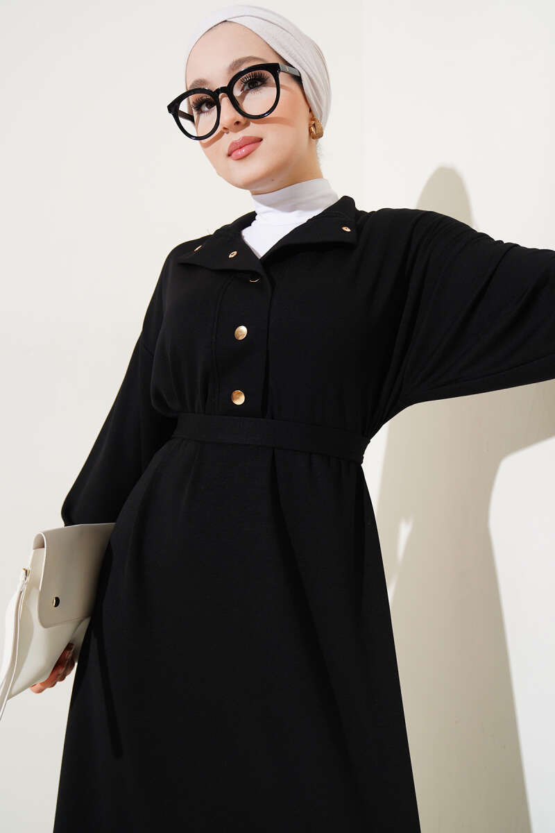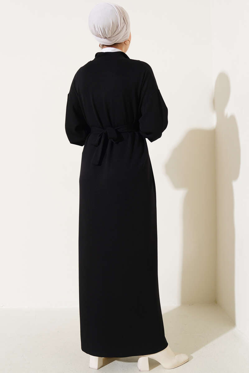 Loyşa Yarım Çıtçıtlı Kuşaklı Elbise Siyah