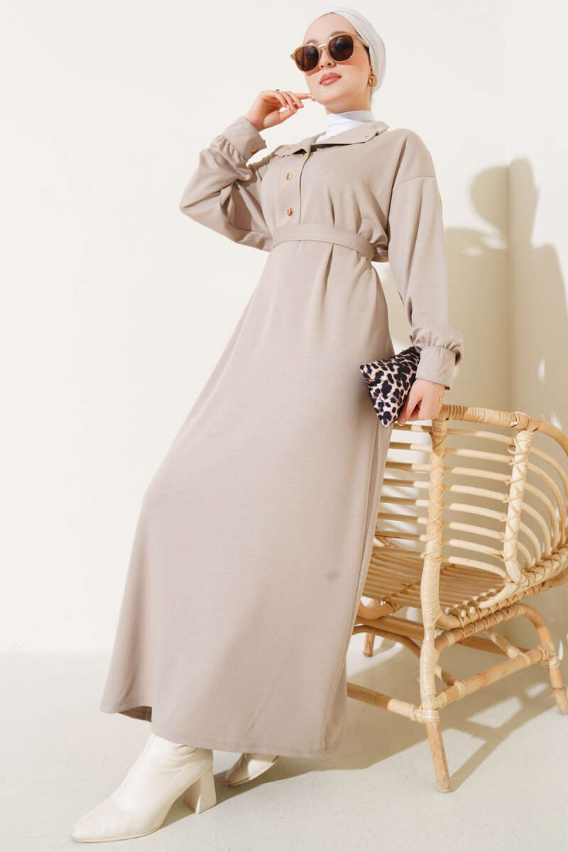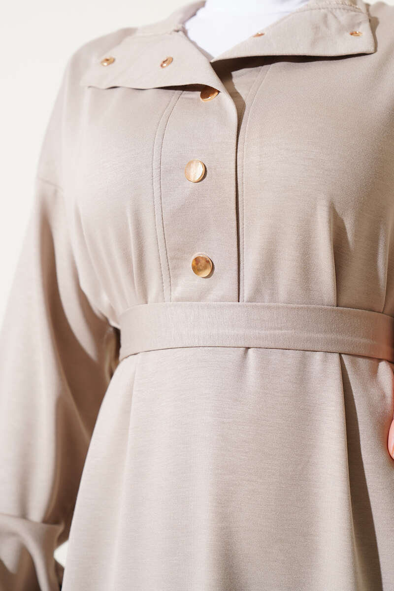 Loyşa Yarım Çıtçıtlı Kuşaklı Elbise Taş