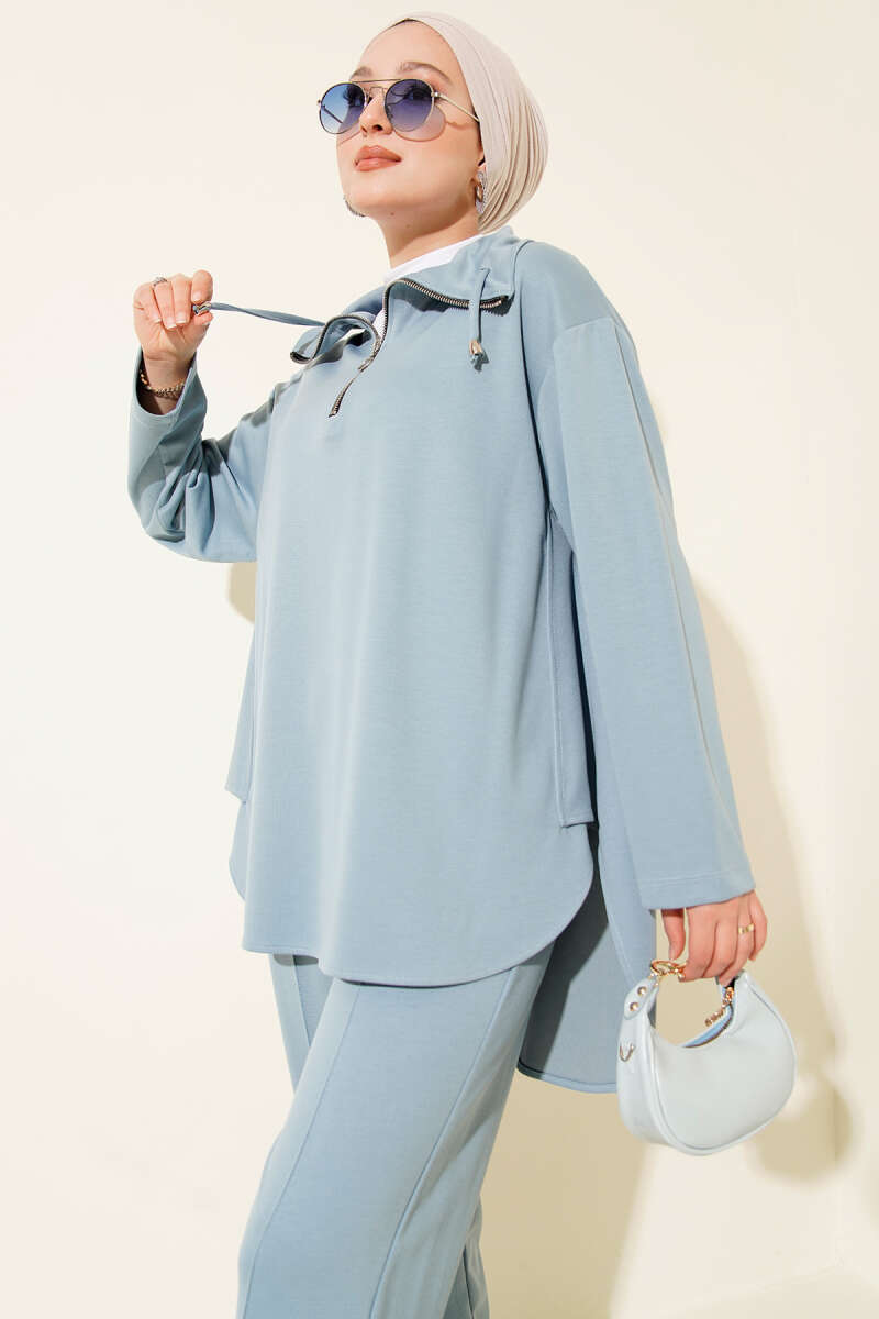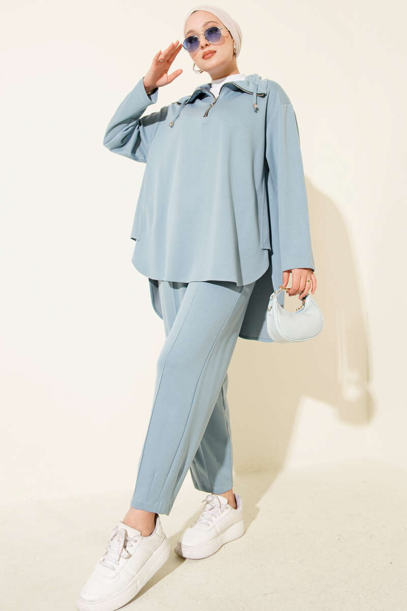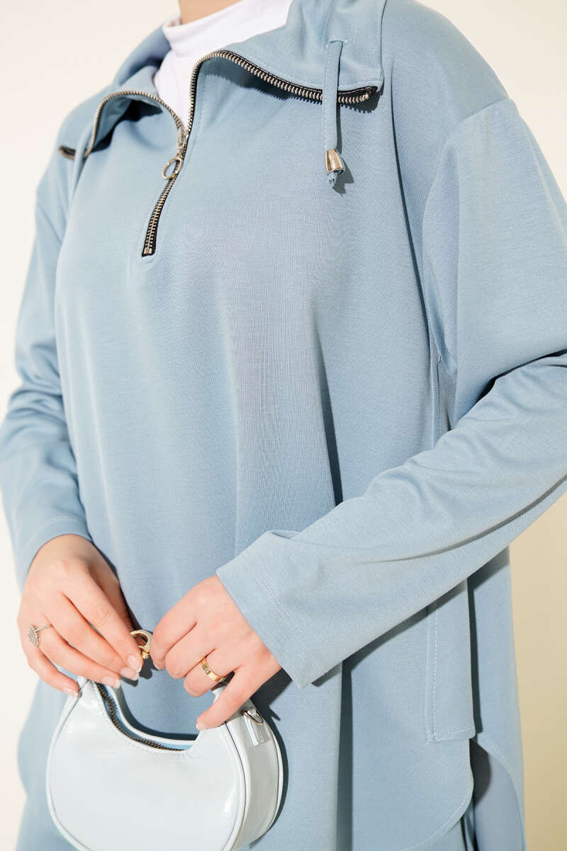 Loyşa Yarım Fermuar Detaylı İkili Takım Bebe Mavi