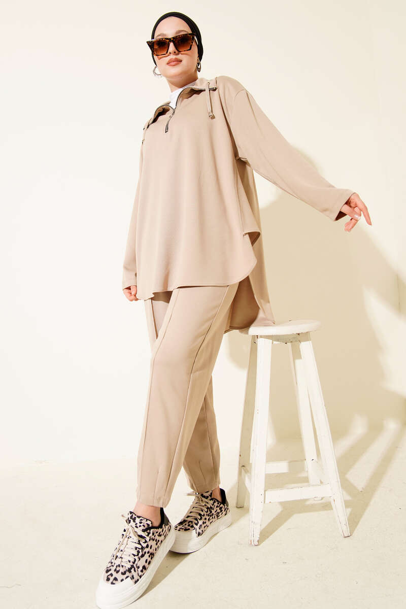 Loyşa Yarım Fermuar Detaylı İkili Takım Bej