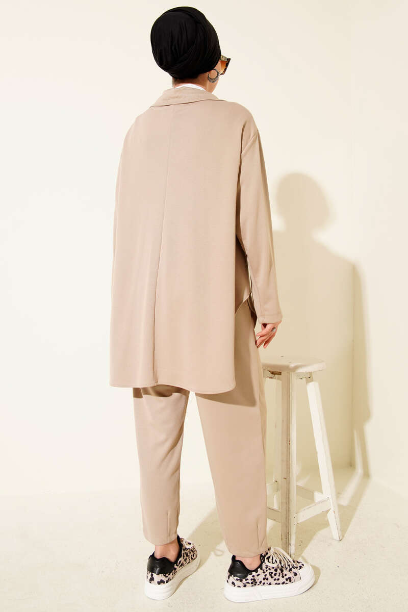 Dört Düğme Detaylı Triko İkili Takım Bej