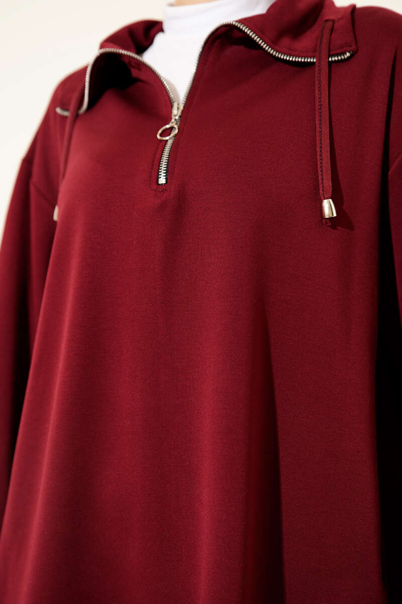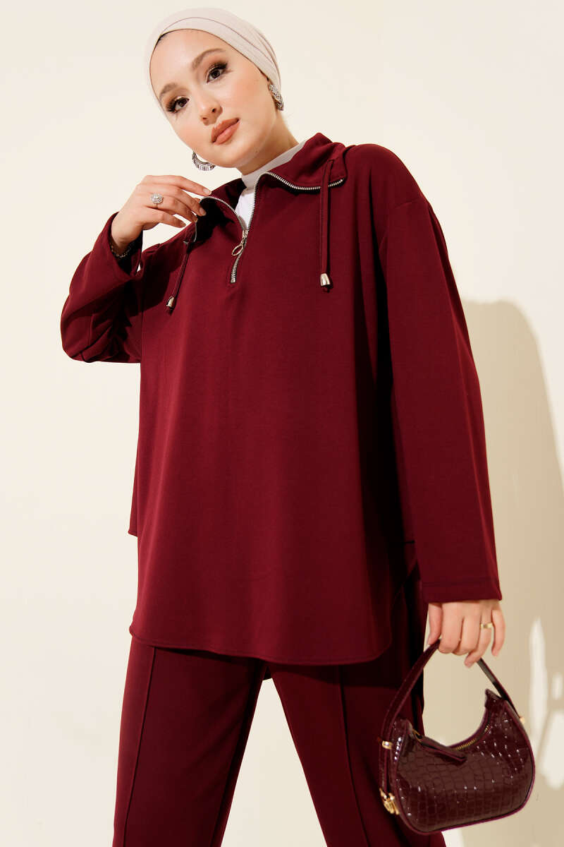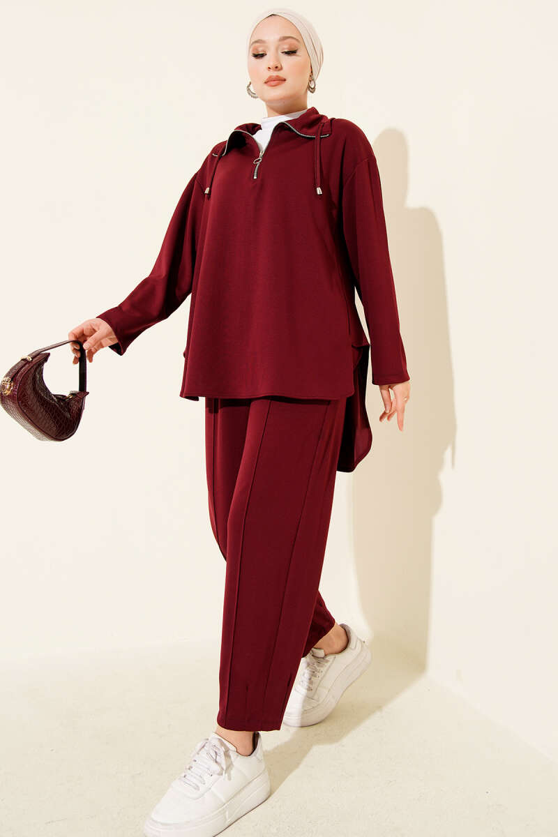 Loyşa Yarım Fermuar Detaylı İkili Takım Bordo