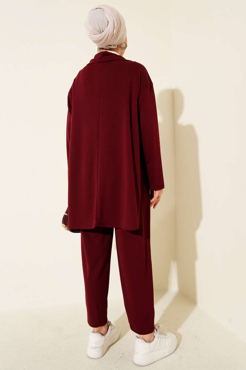 Dört Düğme Detaylı Triko İkili Takım Bordo