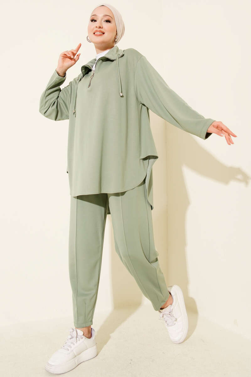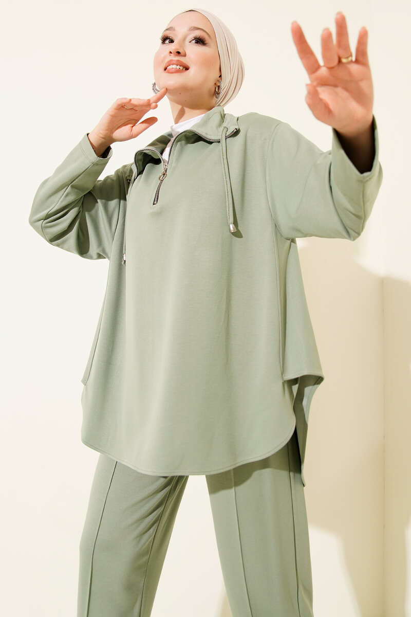 Loyşa Yarım Fermuar Detaylı İkili Takım Çağla Yeşili