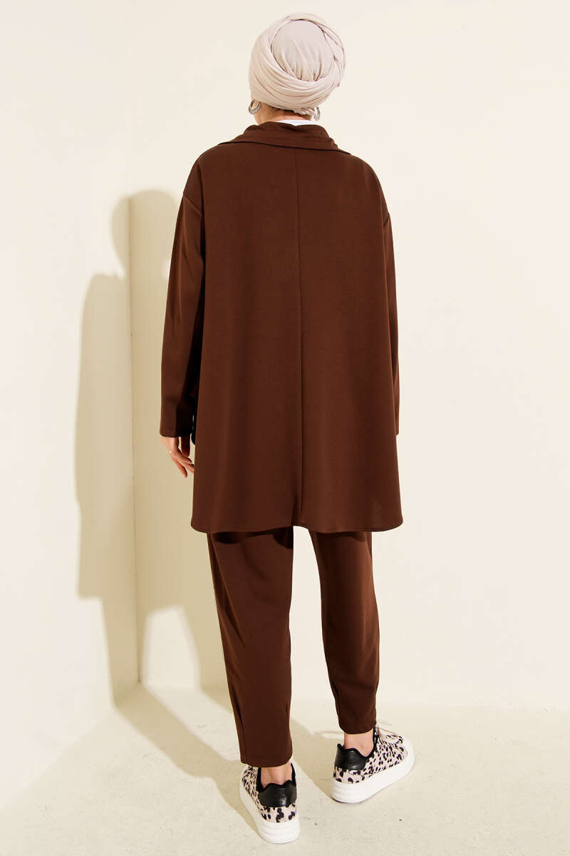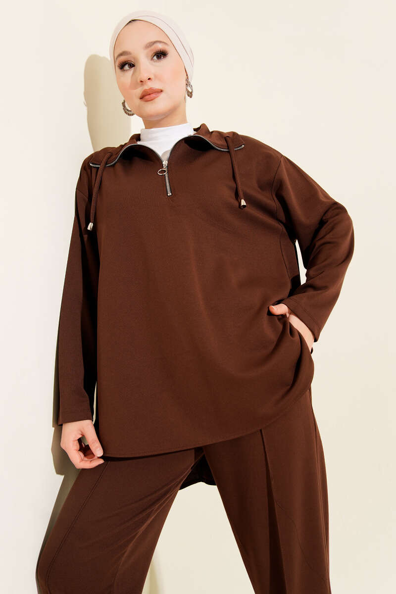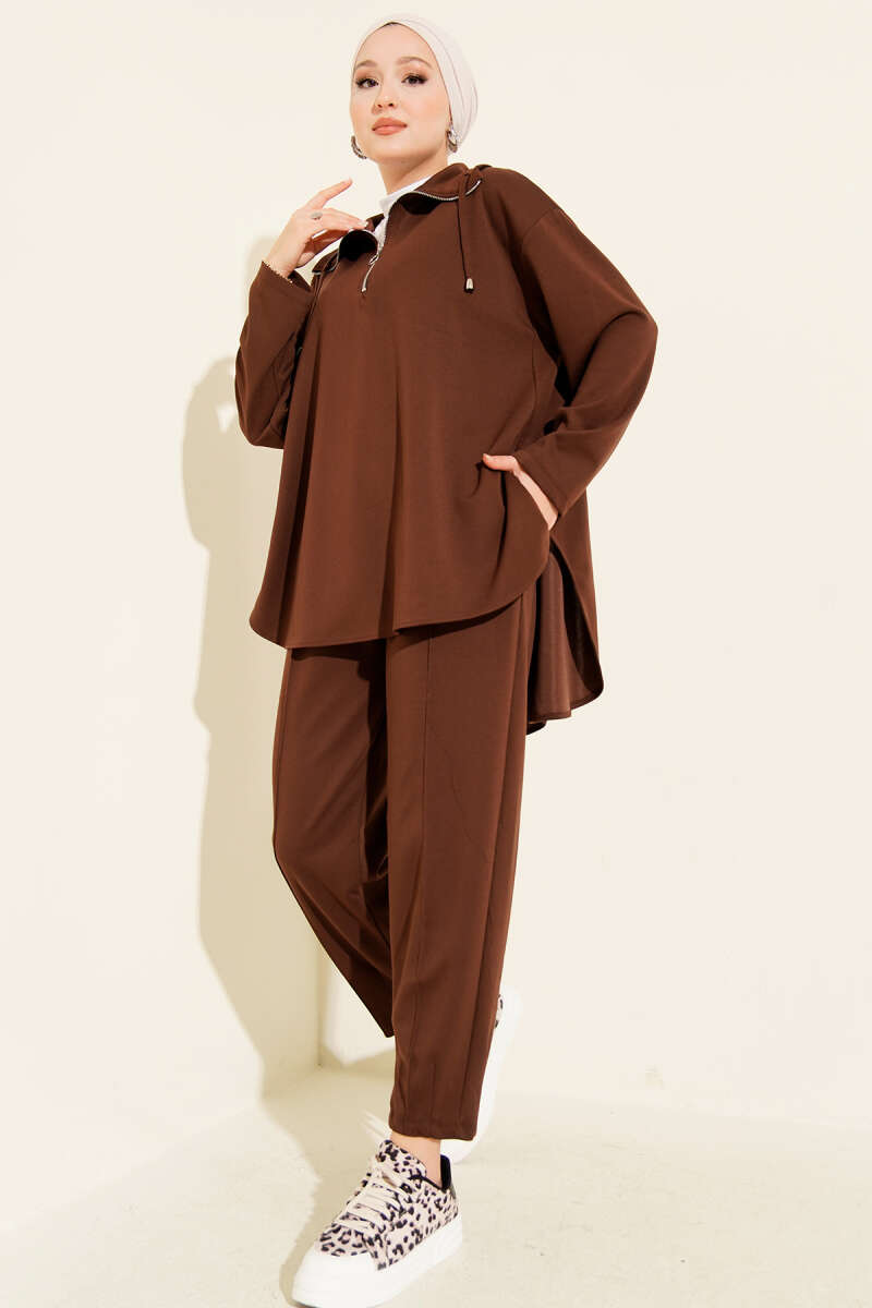 Loyşa Yarım Fermuar Detaylı İkili Takım Kahve