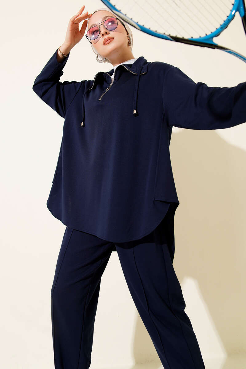 Loyşa Yarım Fermuar Detaylı İkili Takım Lacivert