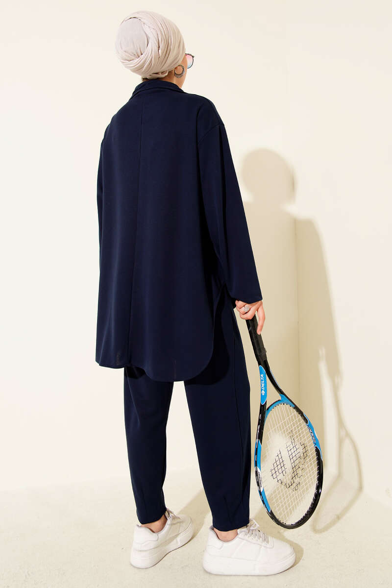 Dört Düğme Detaylı Triko İkili Takım Lacivert