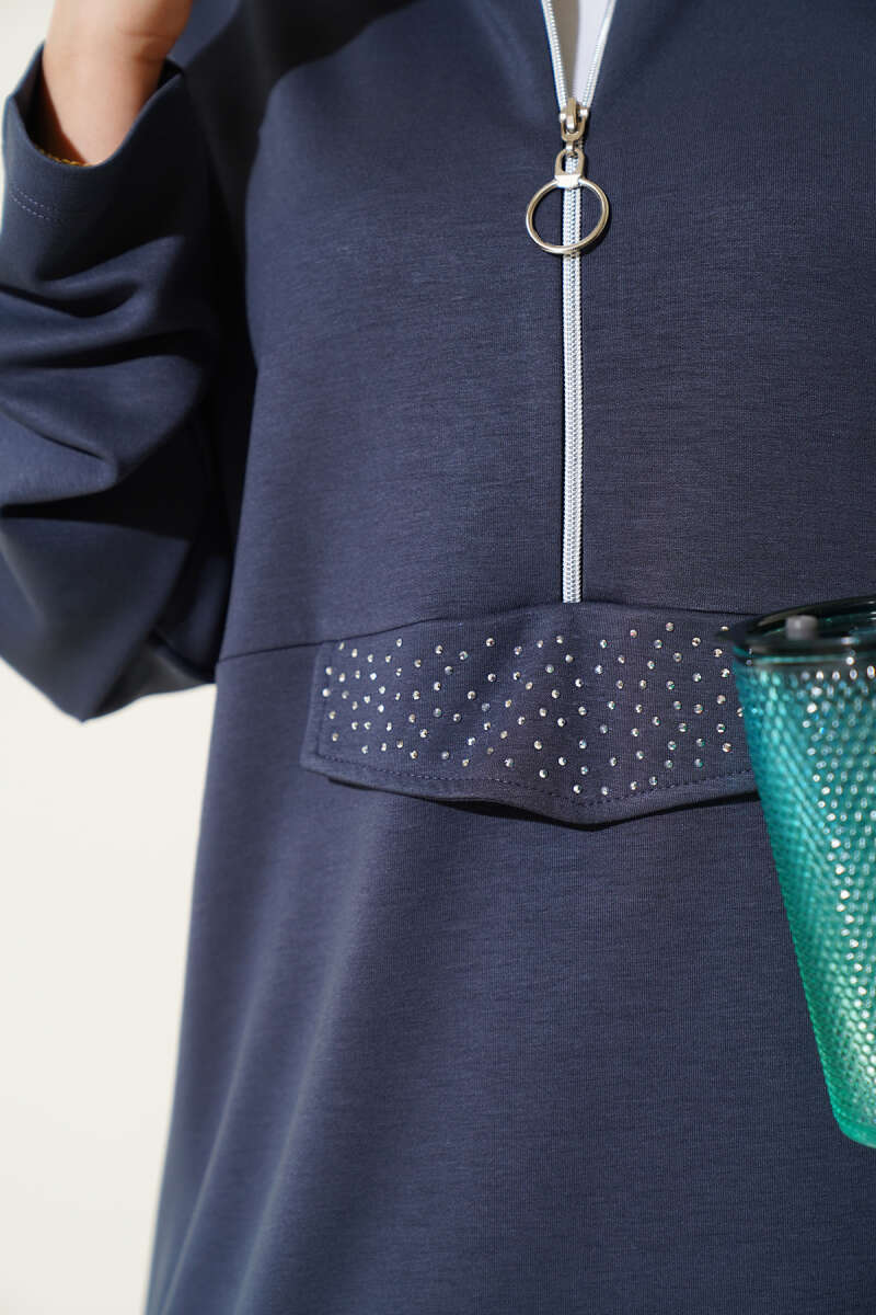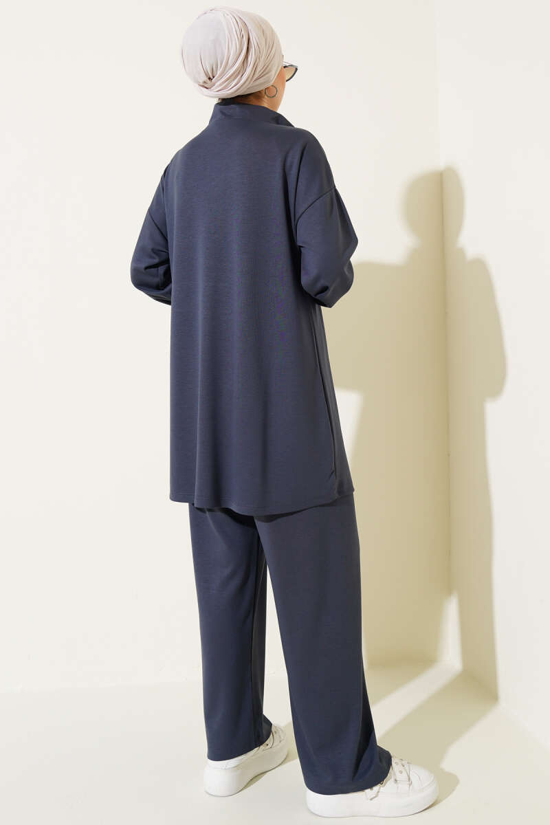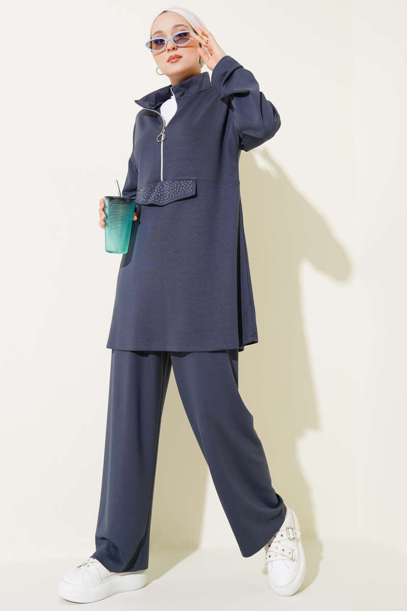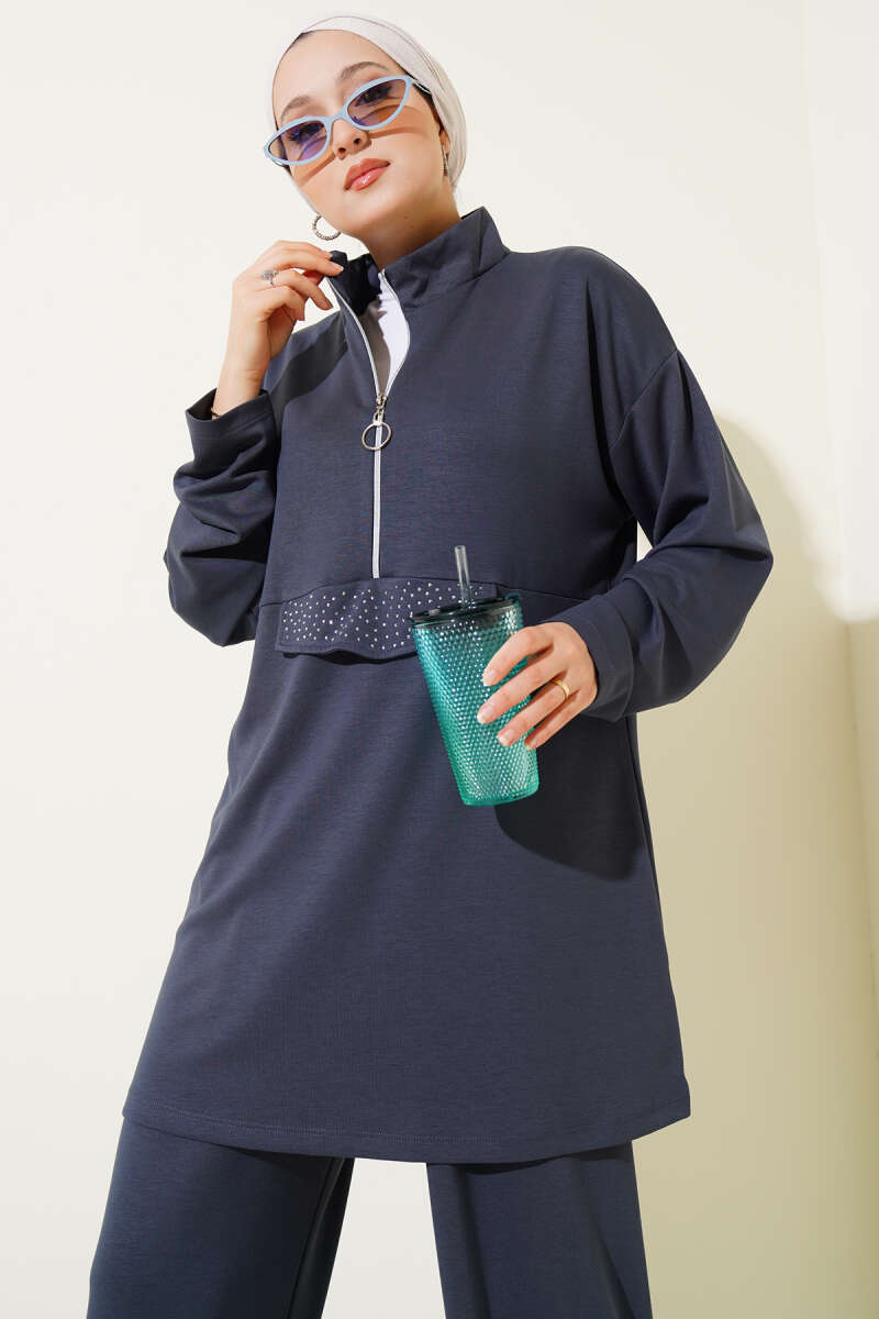 Loyşa Yarım Fermuarlı Taşlı İkili Takım Füme