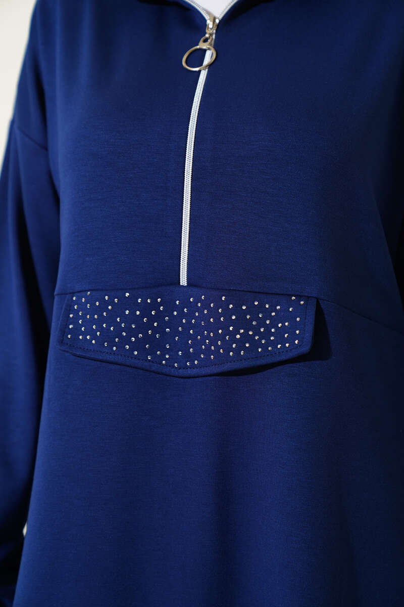 Loyşa Yarım Fermuarlı Taşlı İkili Takım Lacivert