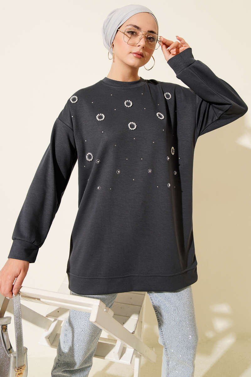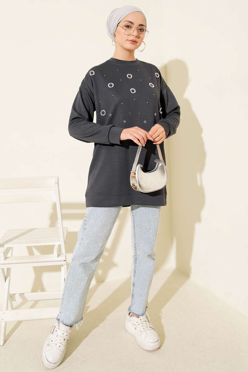 Loyşa Yuvarlak İncili Tunik Lacivert