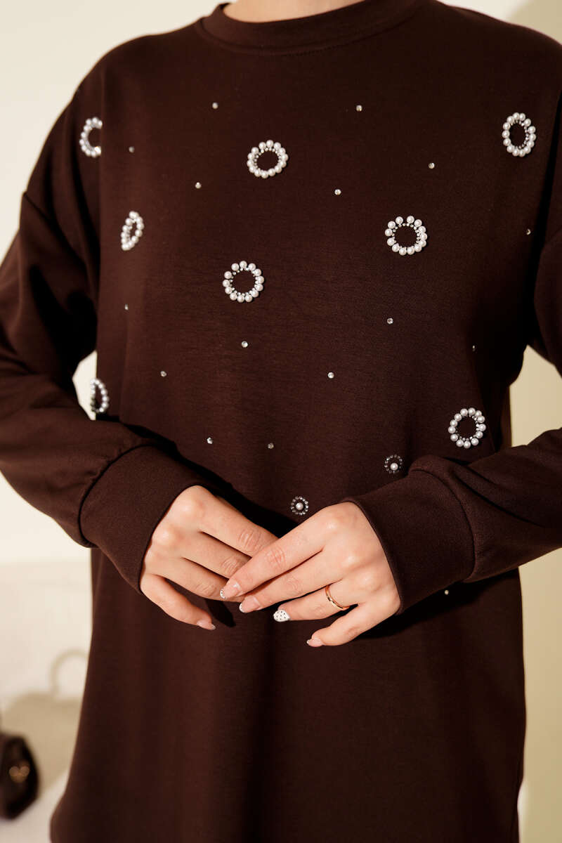 Bilek İpli Fitilli Kaşe Tunik Kahve