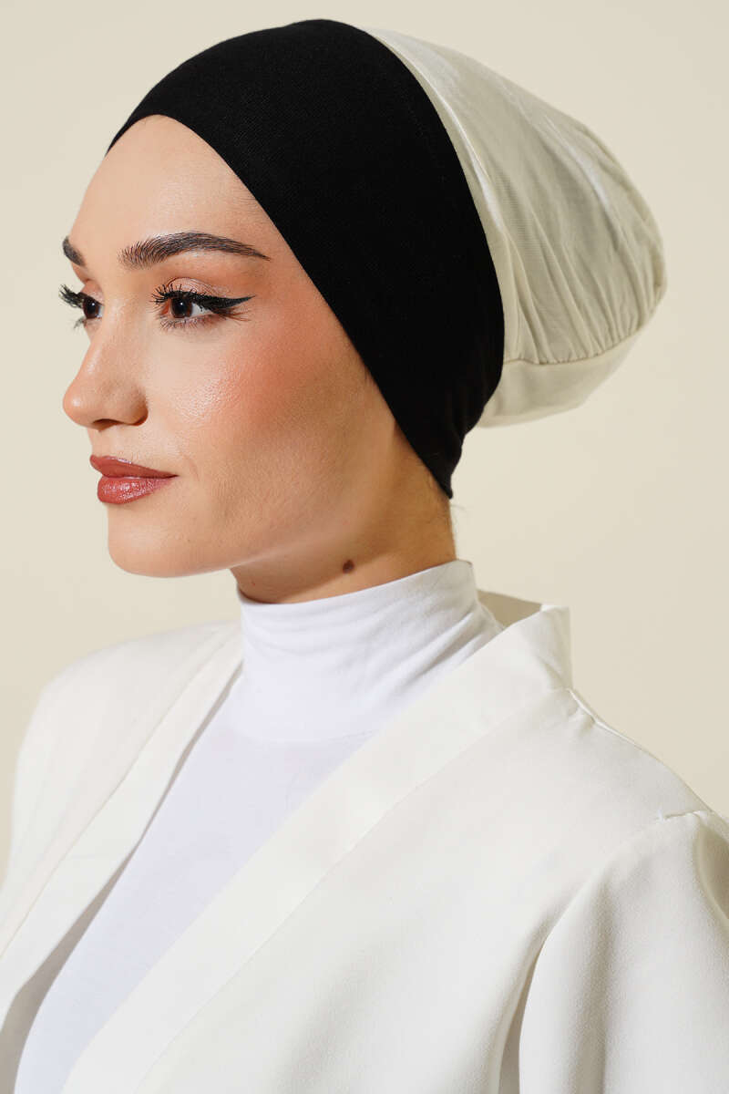 Kaymaz Silikonlu Bağlamalı Bone Ekru