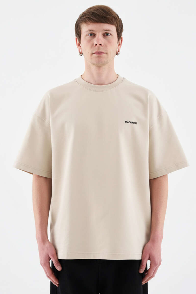 Machinist Nakışlı Oversize Erkek T-shirt Ekru