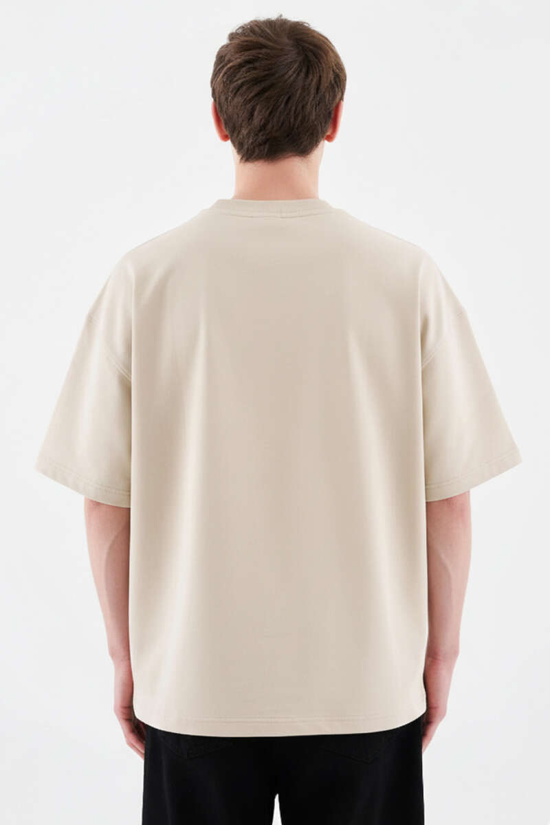 Yazı Baskılı Salaş Erkek T-shirt Bej