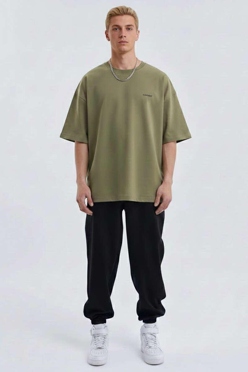 Yazı Baskılı Salaş Erkek T-shirt Taş