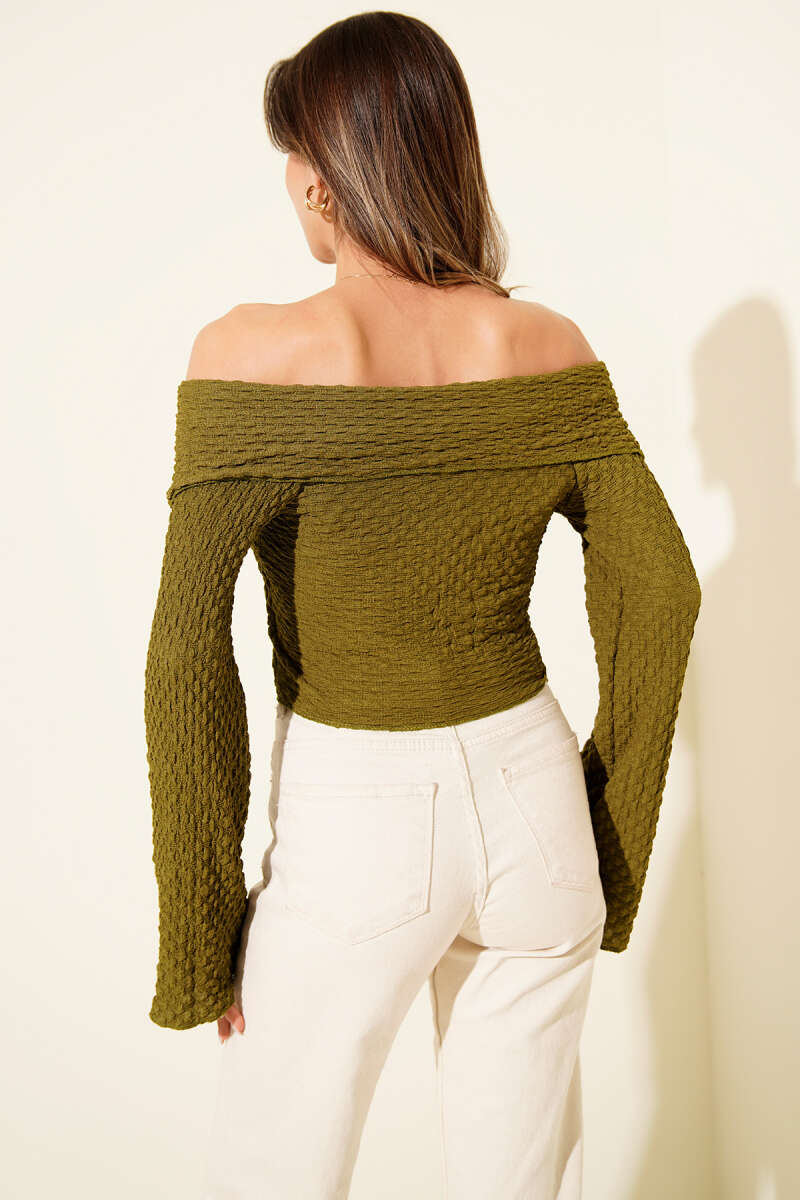 Madonna Yaka Gofre Bluz Yağ Yeşili