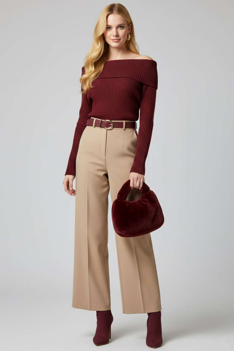 Çoban Dikiş Detaylı Triko Tunik Bordo