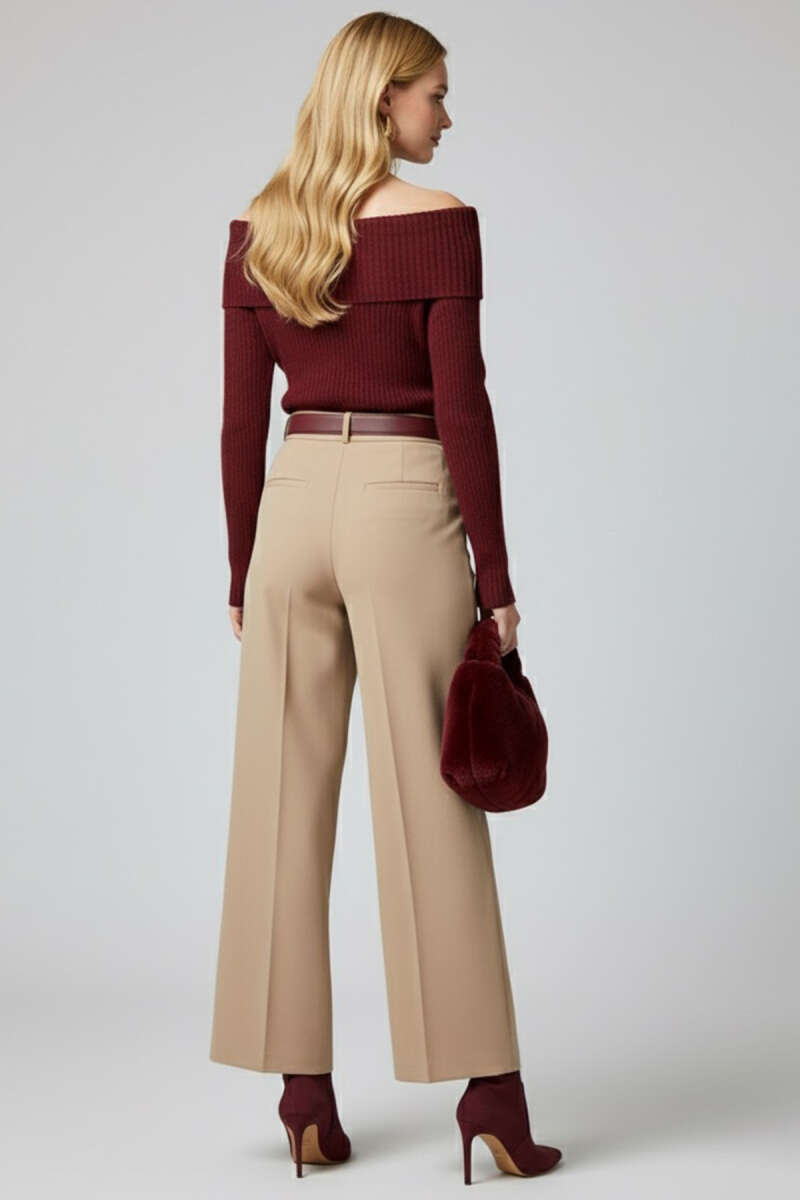 İnce Kemerli Pileli Kumaş Pantolon Füme
