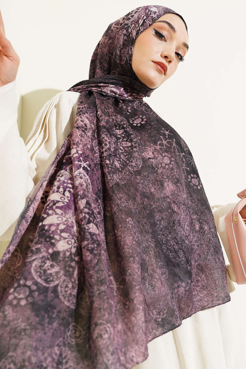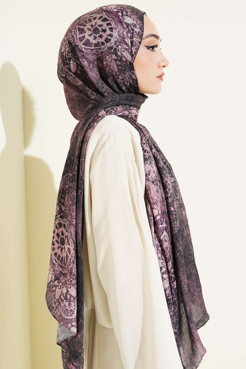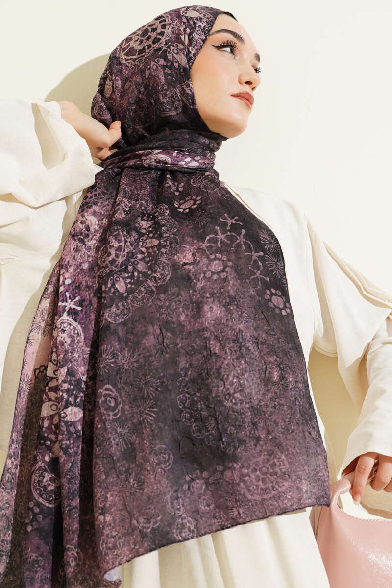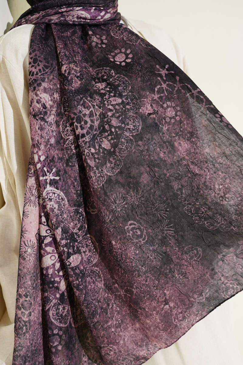 Mandala Desen Bambu Kraş Şal Bordo