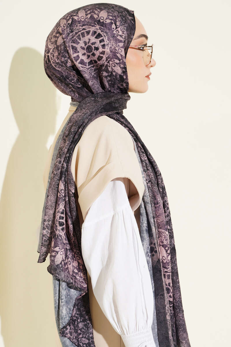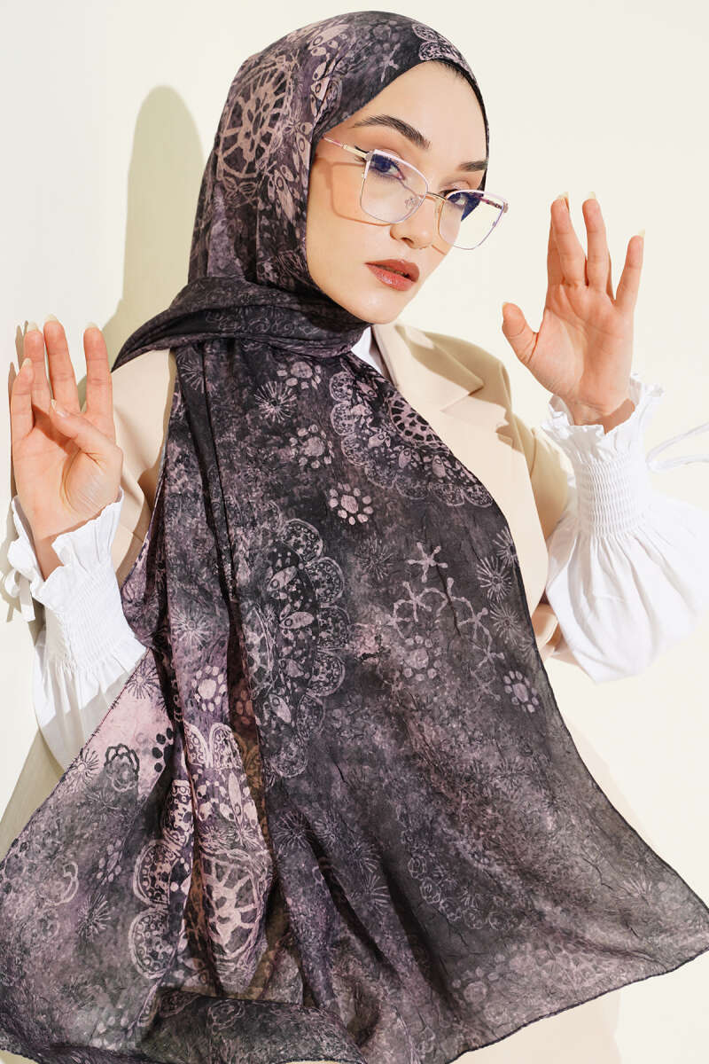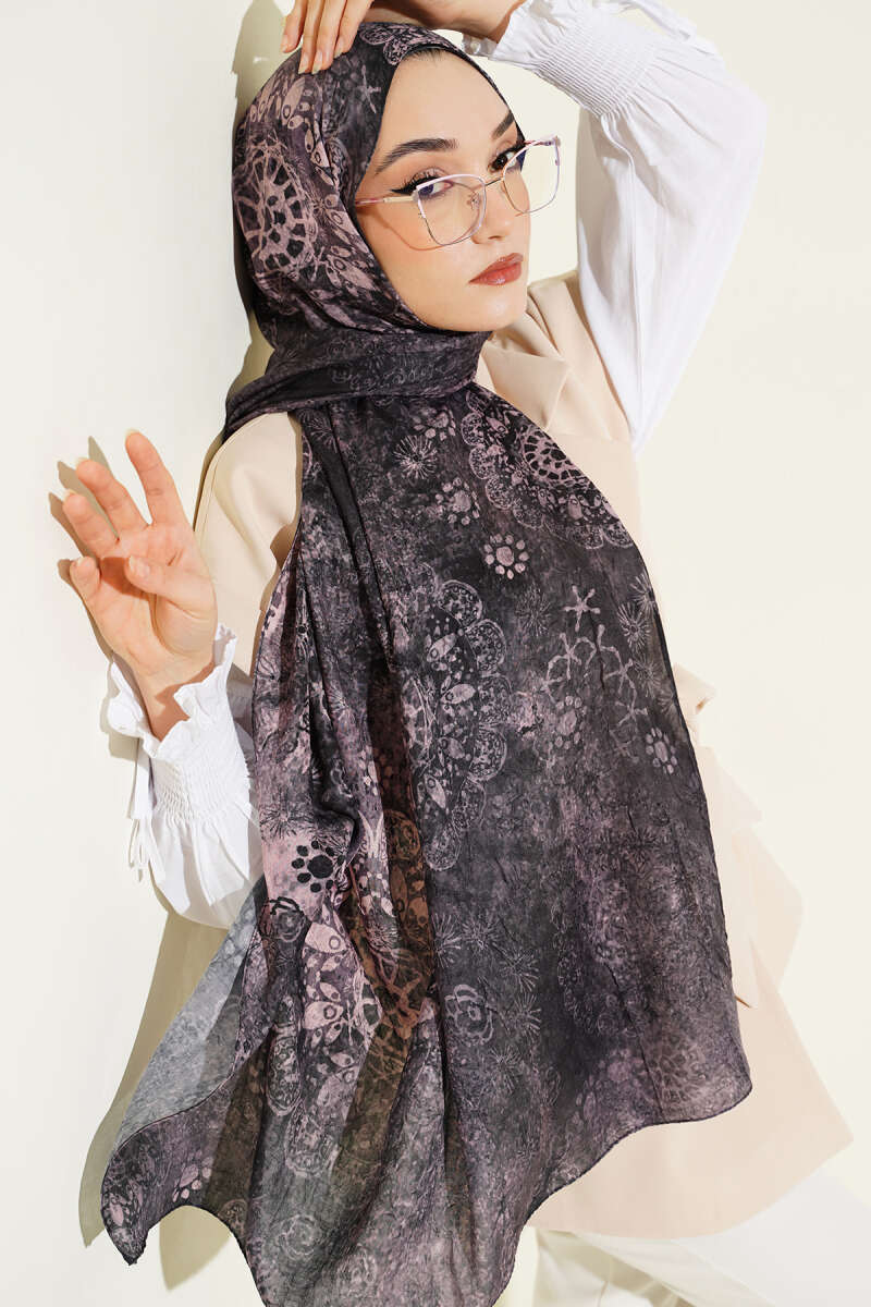 Mandala Desen Bambu Kraş Şal Pembe Gri
