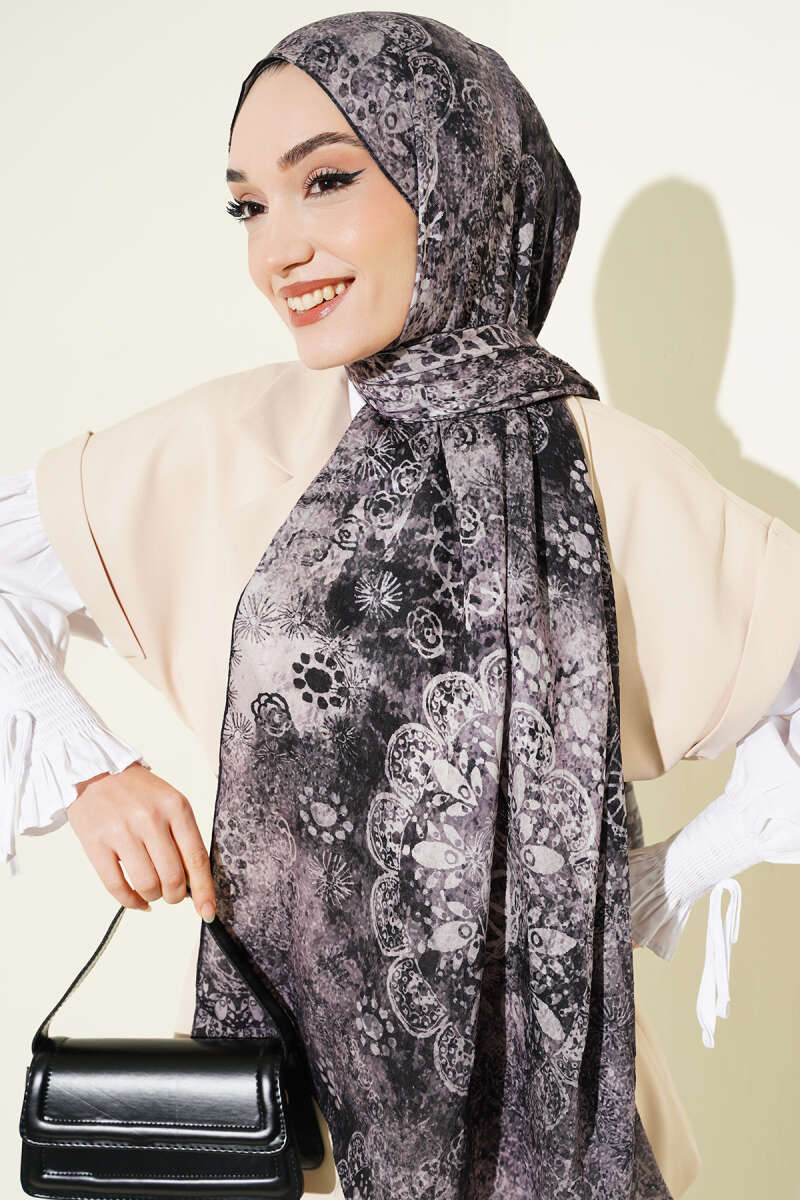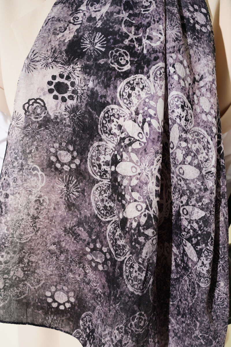 Mandala Desen Bambu Kraş Şal Siyah