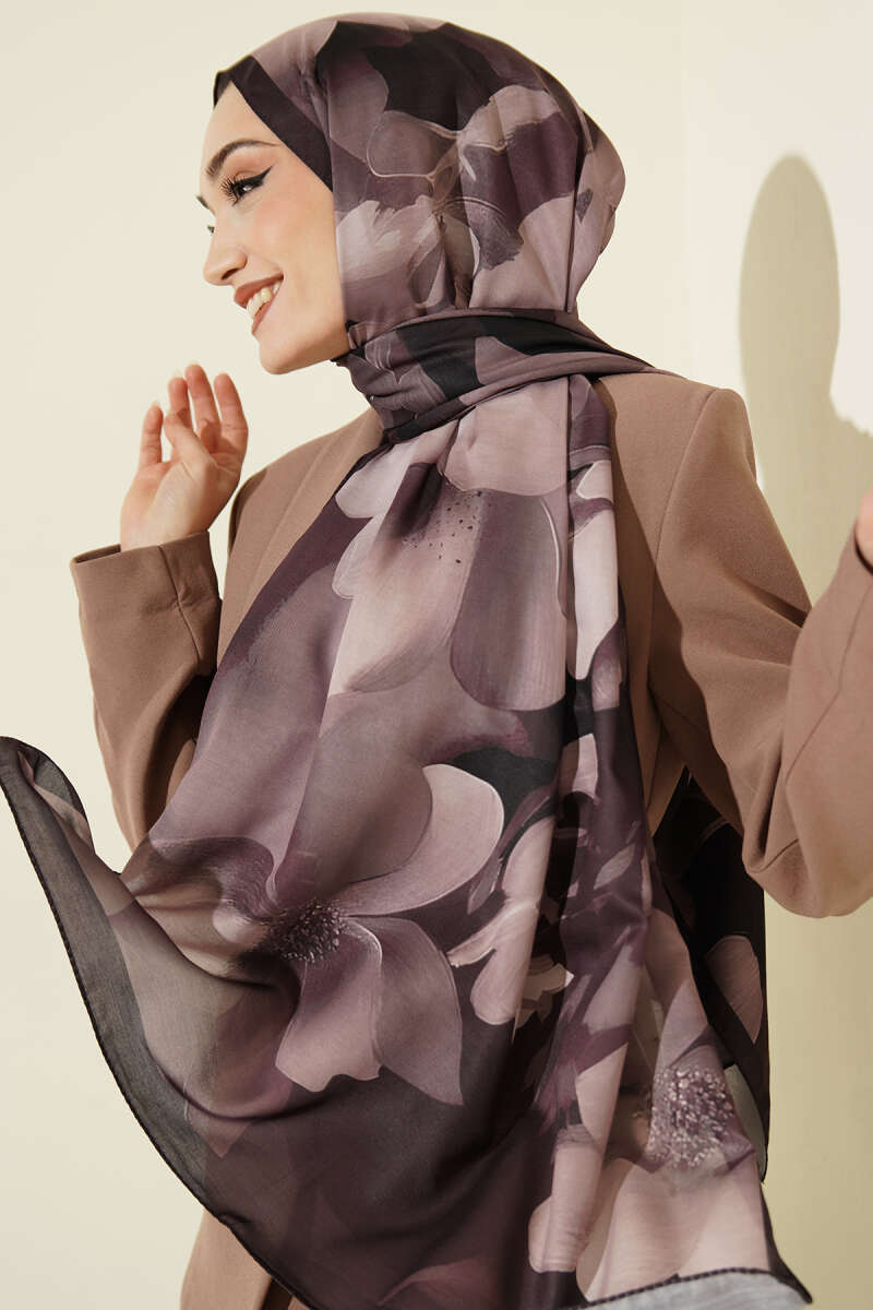 Manolya Desenli Şal Acı Kahve