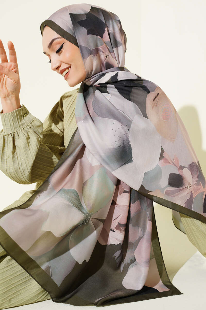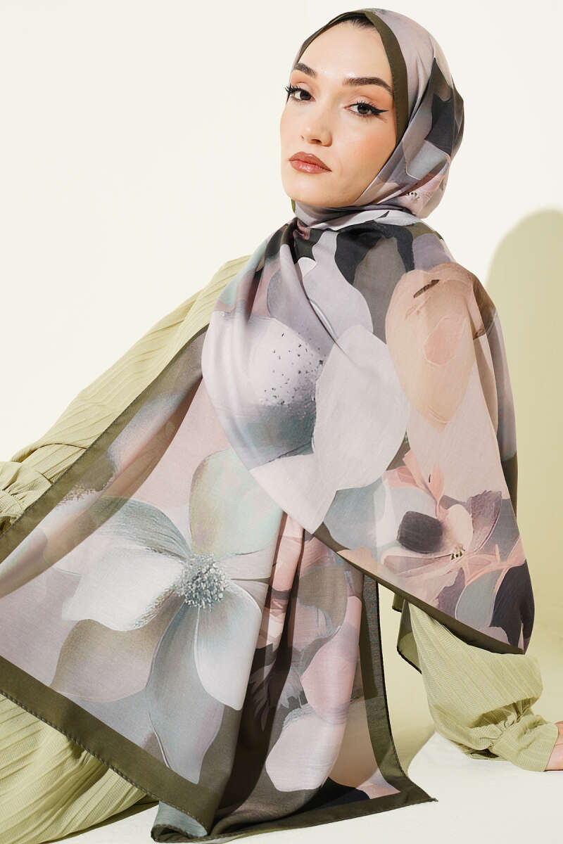 Manolya Desenli Şal Haki
