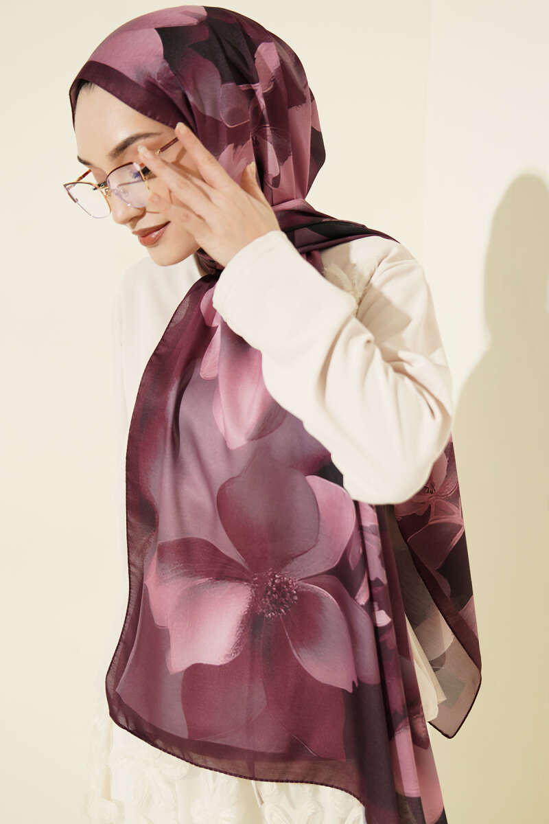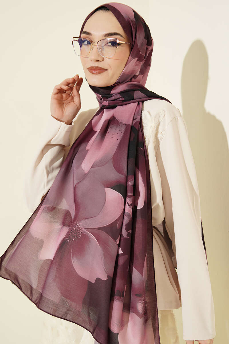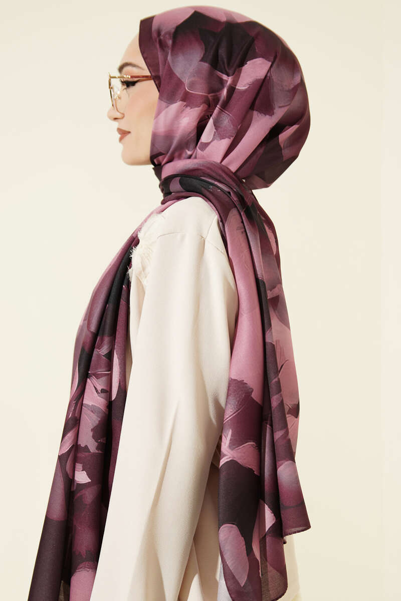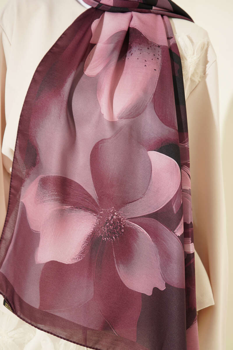 Manolya Desenli Şal Mürdüm