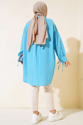 Yeni sezon tunik modelimizi çok seveceksiniz. Önü kısa arkası uzun modeldir. Önü boydan düğmelidir. Çizgili modeldir. Kol bilekleri bağcıklıdır. Kırışık görünümlü tunik modelimiz kombinlerinizin vazgeçilmez parçası olacak. Tuniğimizin renk seçenekleri mevcuttur.