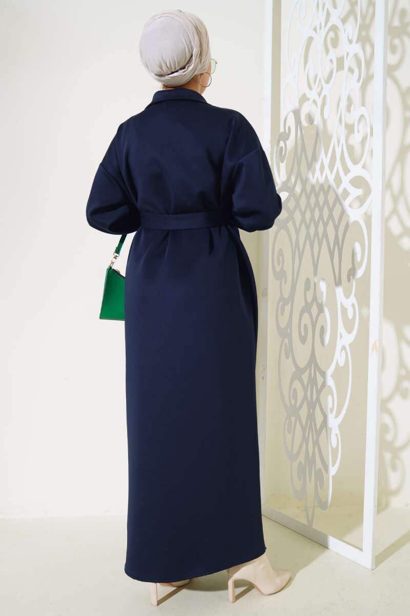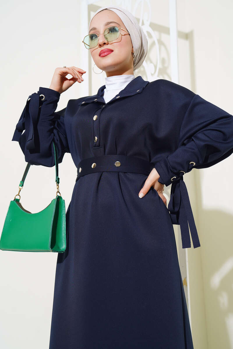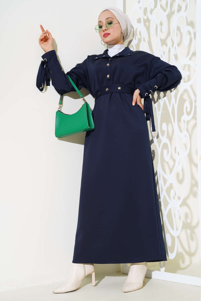 Kolları Fiyonk Detaylı Selanik Elbise Taş