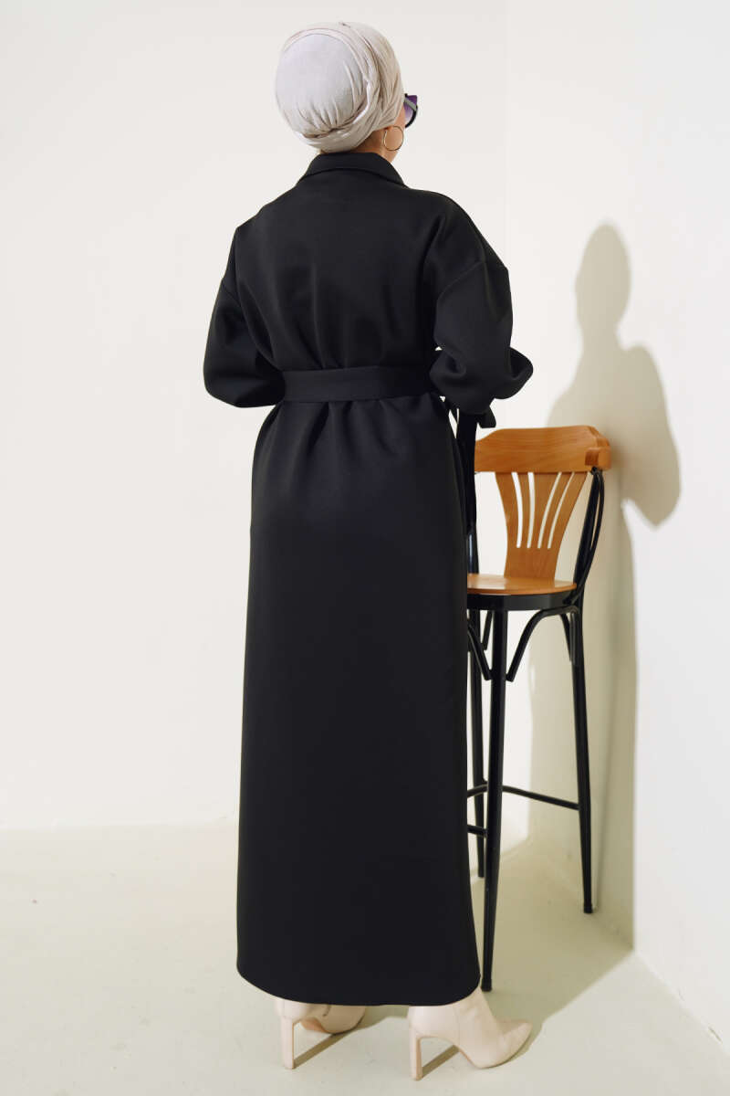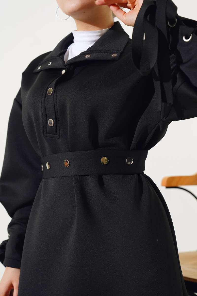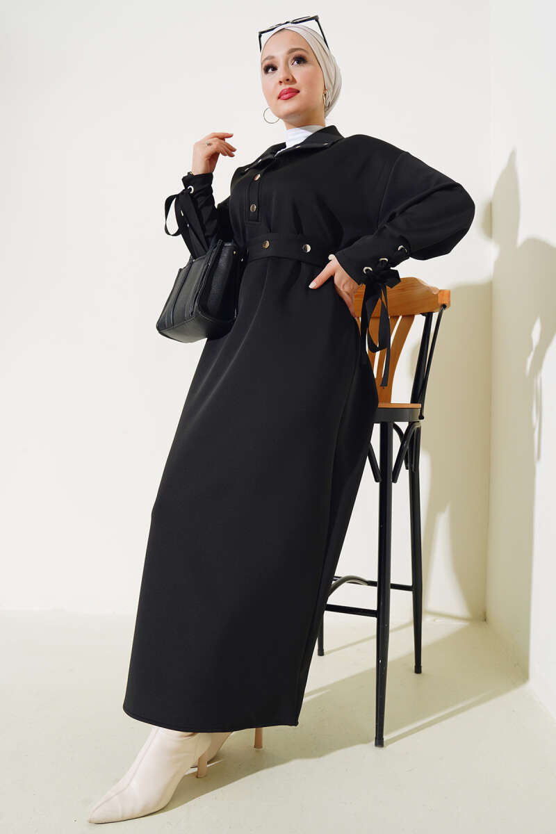 Kolları Fiyonk Detaylı Selanik Elbise Siyah