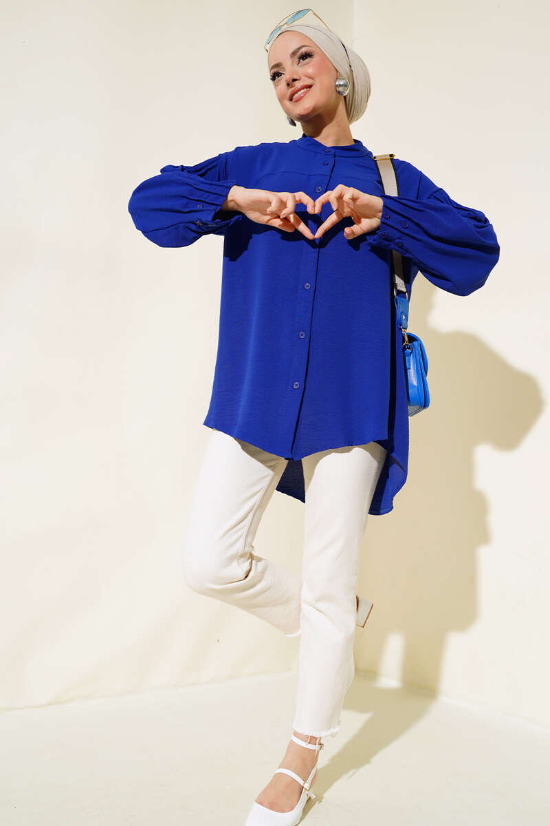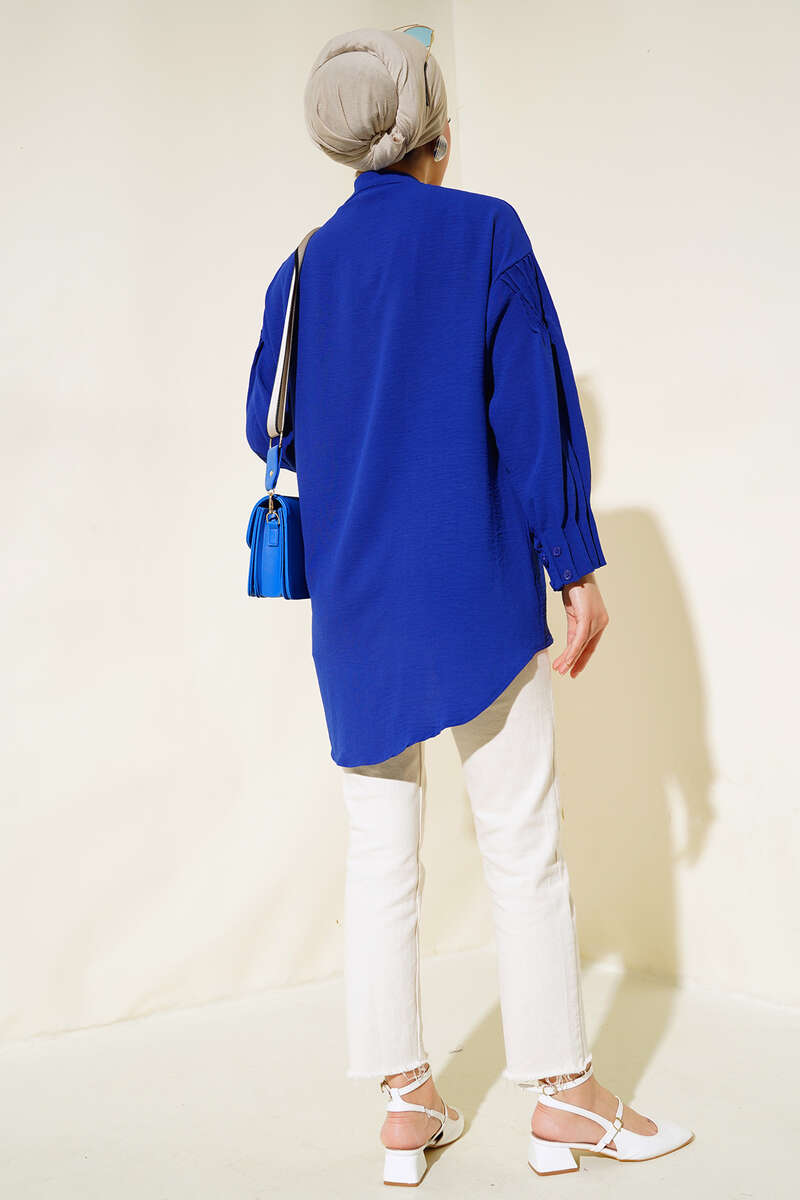 Manşet Büzgülü Tunik Saks